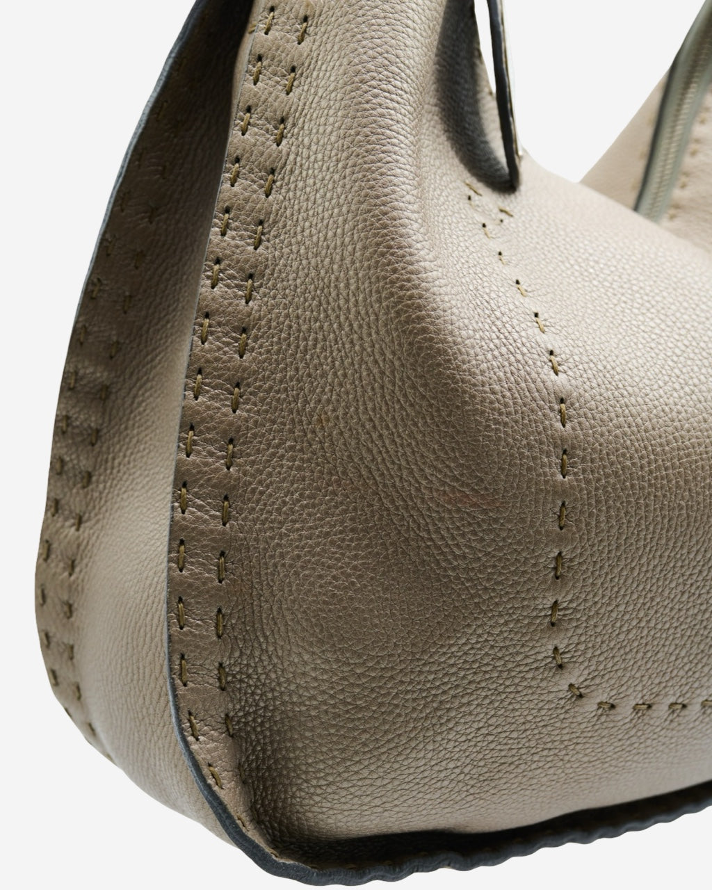 - Description: Fendi shoulder bag in silver-tone leather, fixed top handle, main opening with two-way zipper, leather interior lining with pockets, silver-tone hardware