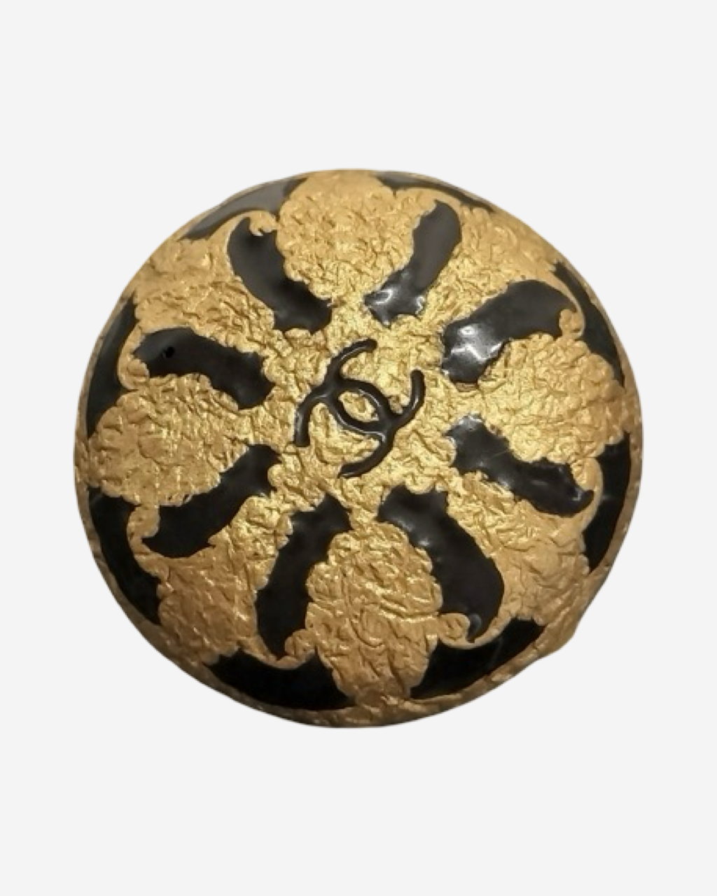 - Description: Chanel Vintage earrings in black with gold, characteristic CC logo, snap closure, engraved on the back
