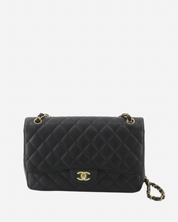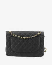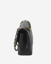 - Description: Classic flap jumbo shoulder bag in black, CC Turn Lock closure, wine-colored interior, gold-colored hardware