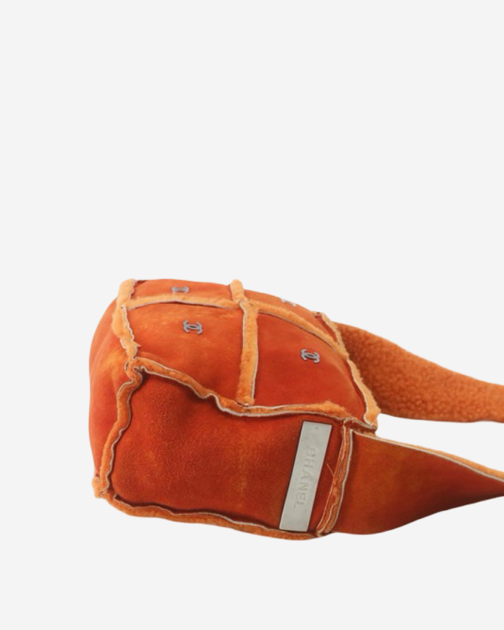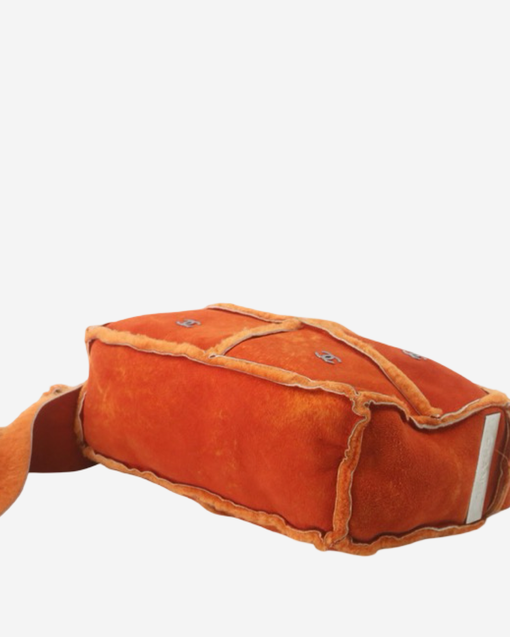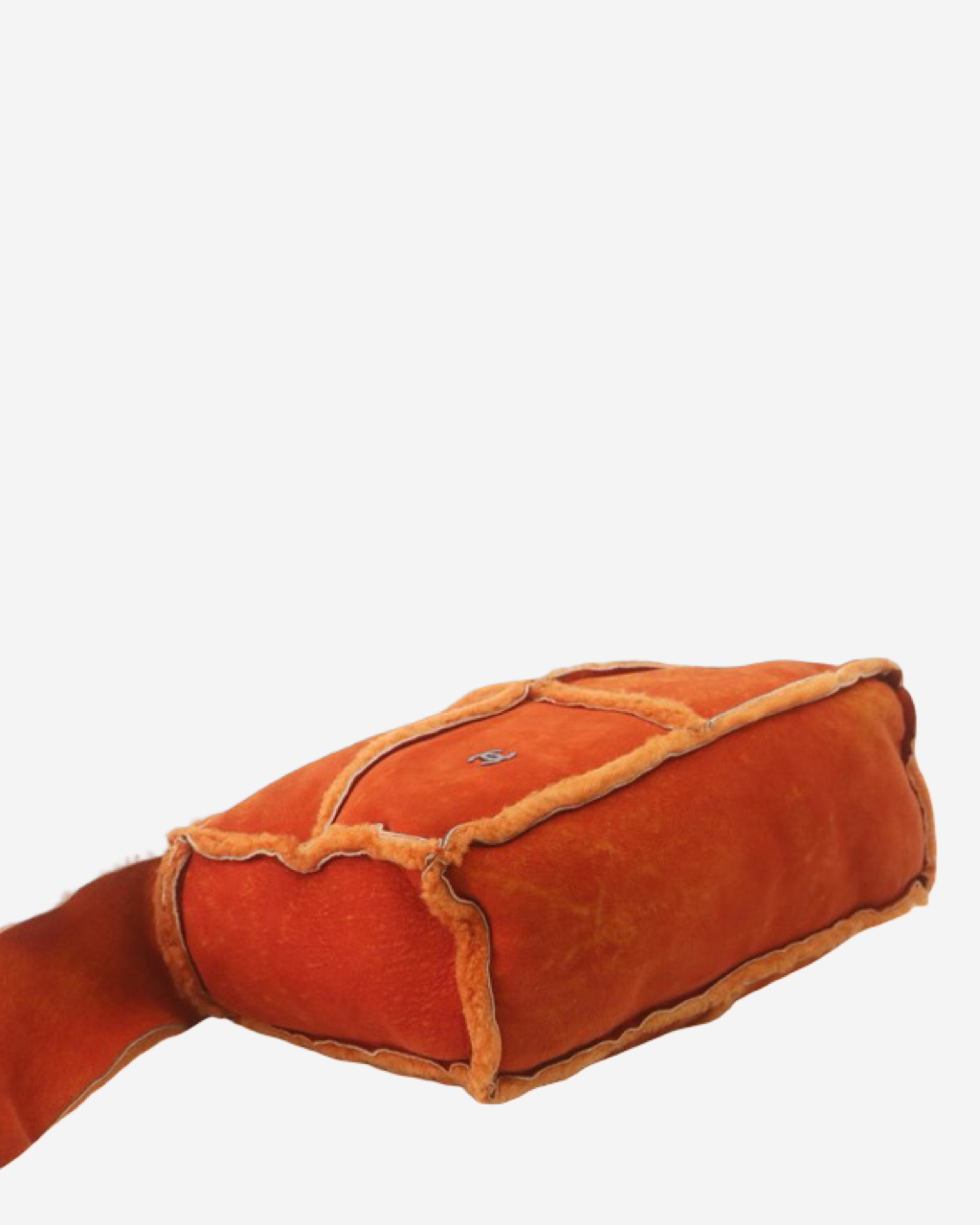 - Description: Orange crossbody bag, flap opening, sherpa lining, silver-tone hardware