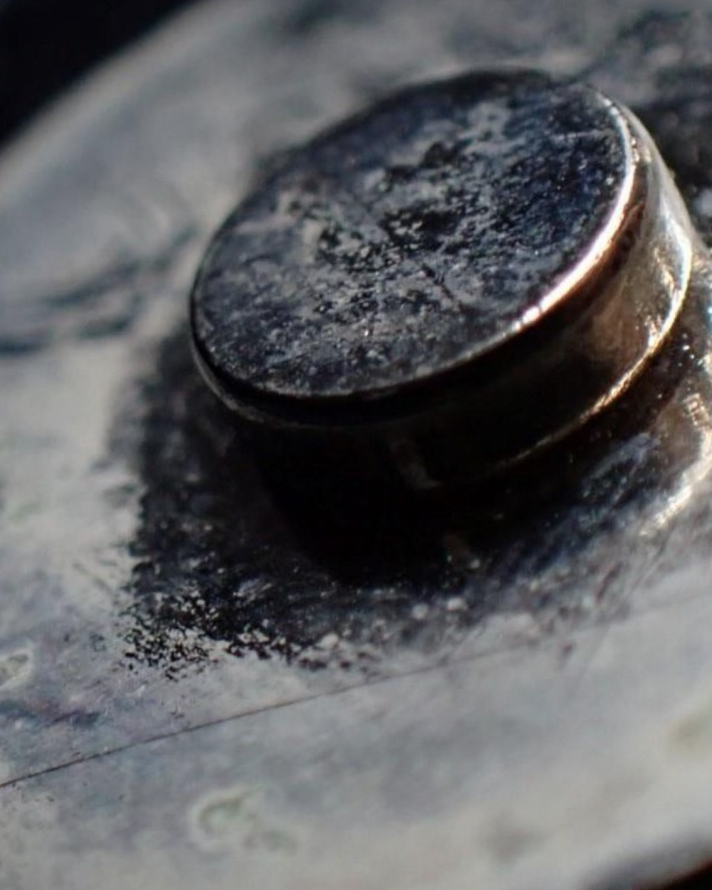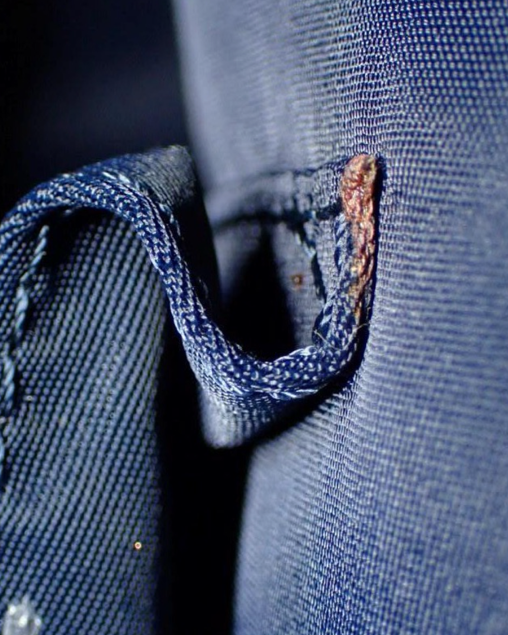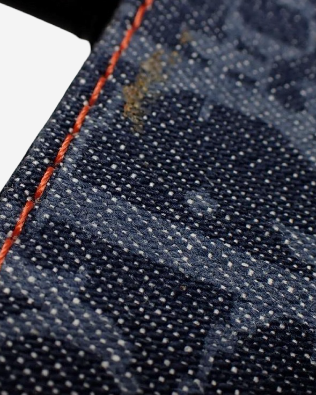 - Condition: Good condition with natural use (slight rubbing and stains on the denim and hardware)