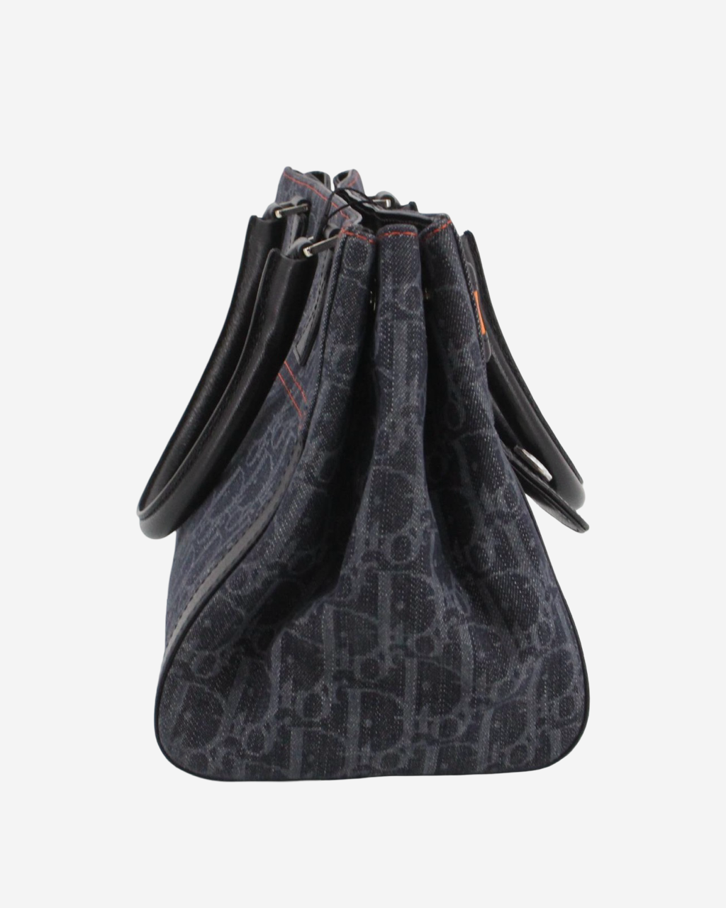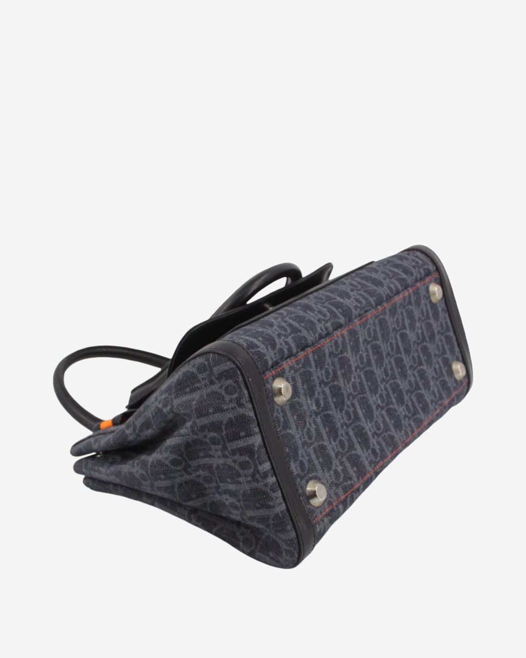 - Description: Dior handbag in blue denim with trotter print, double fixed handles, main opening with magnetic snap, front pocket, textile lining with pocket, silver-tone hardware
