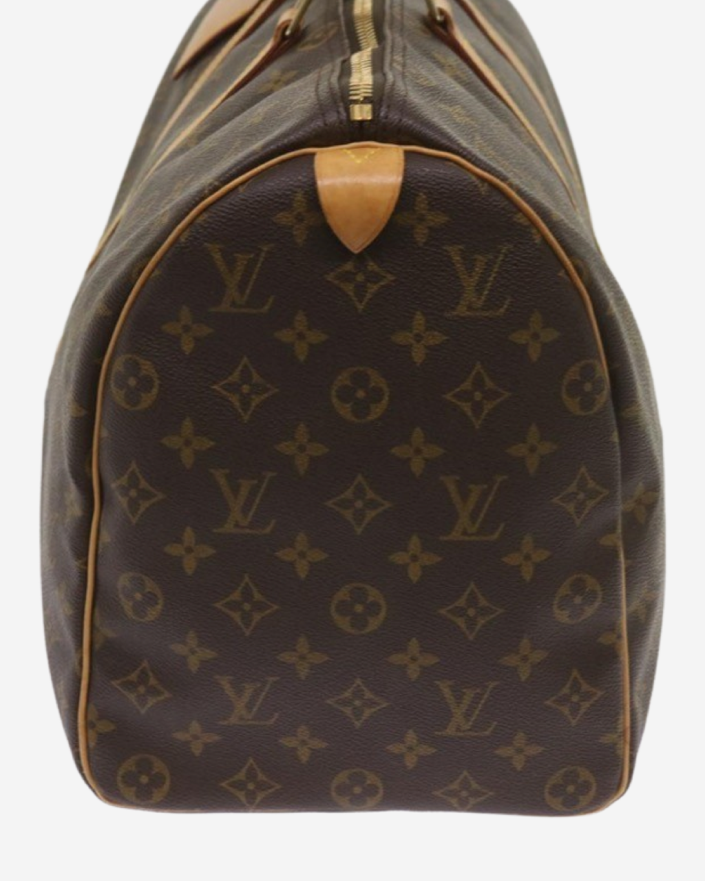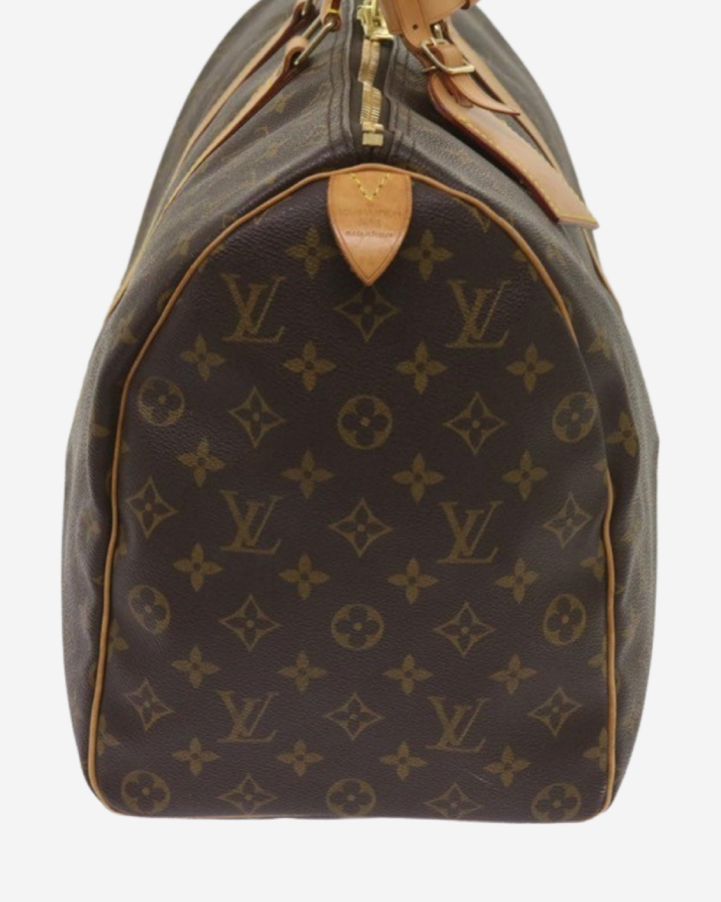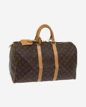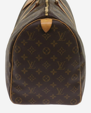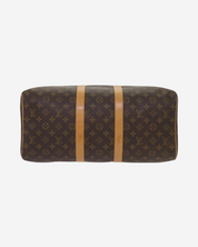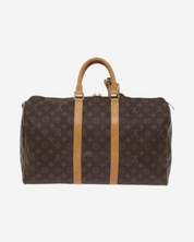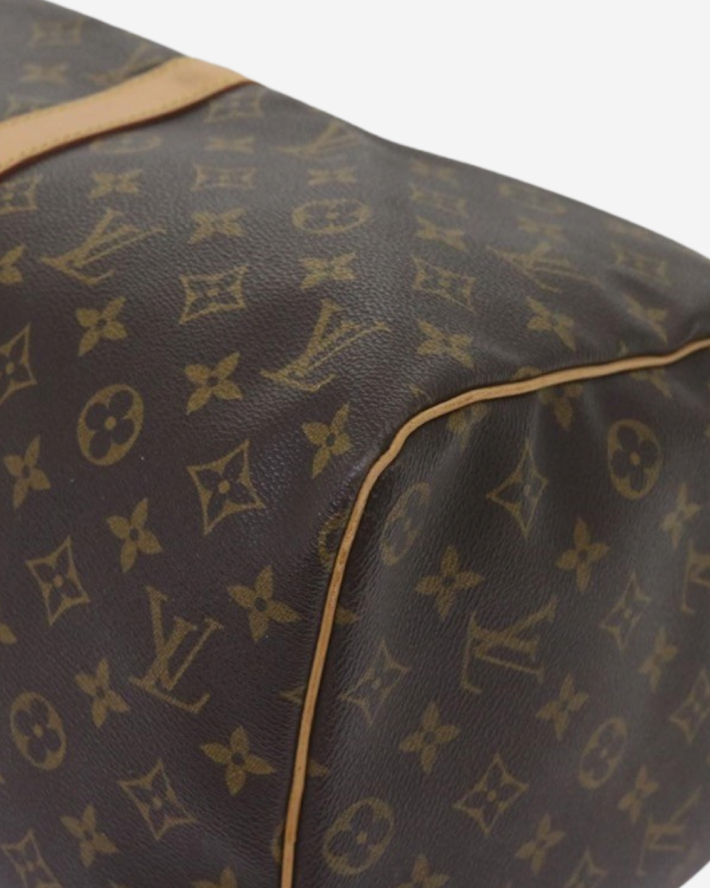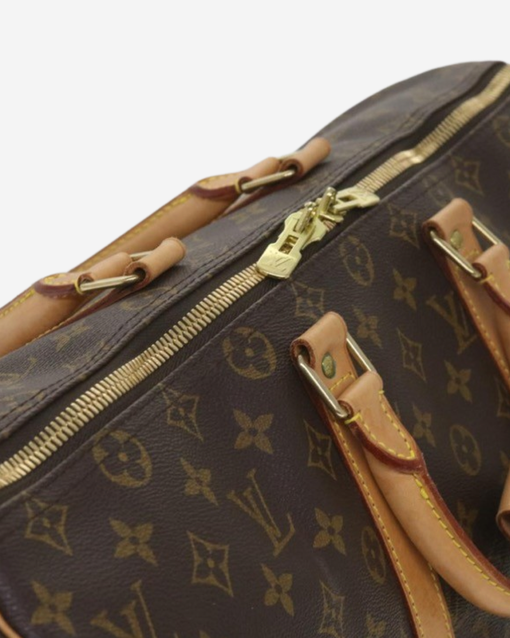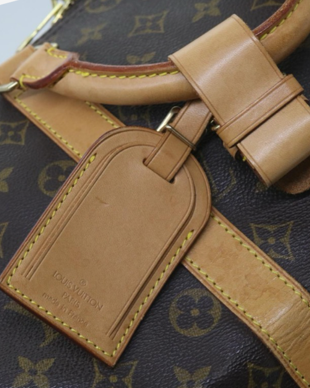 • Description: Keepall handbag in leather, with two braided handles at the top, two-way closure, main compartment, gold hardware.