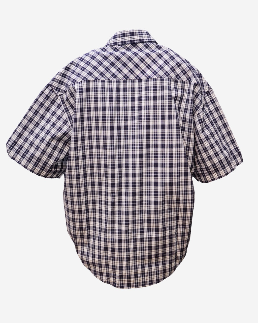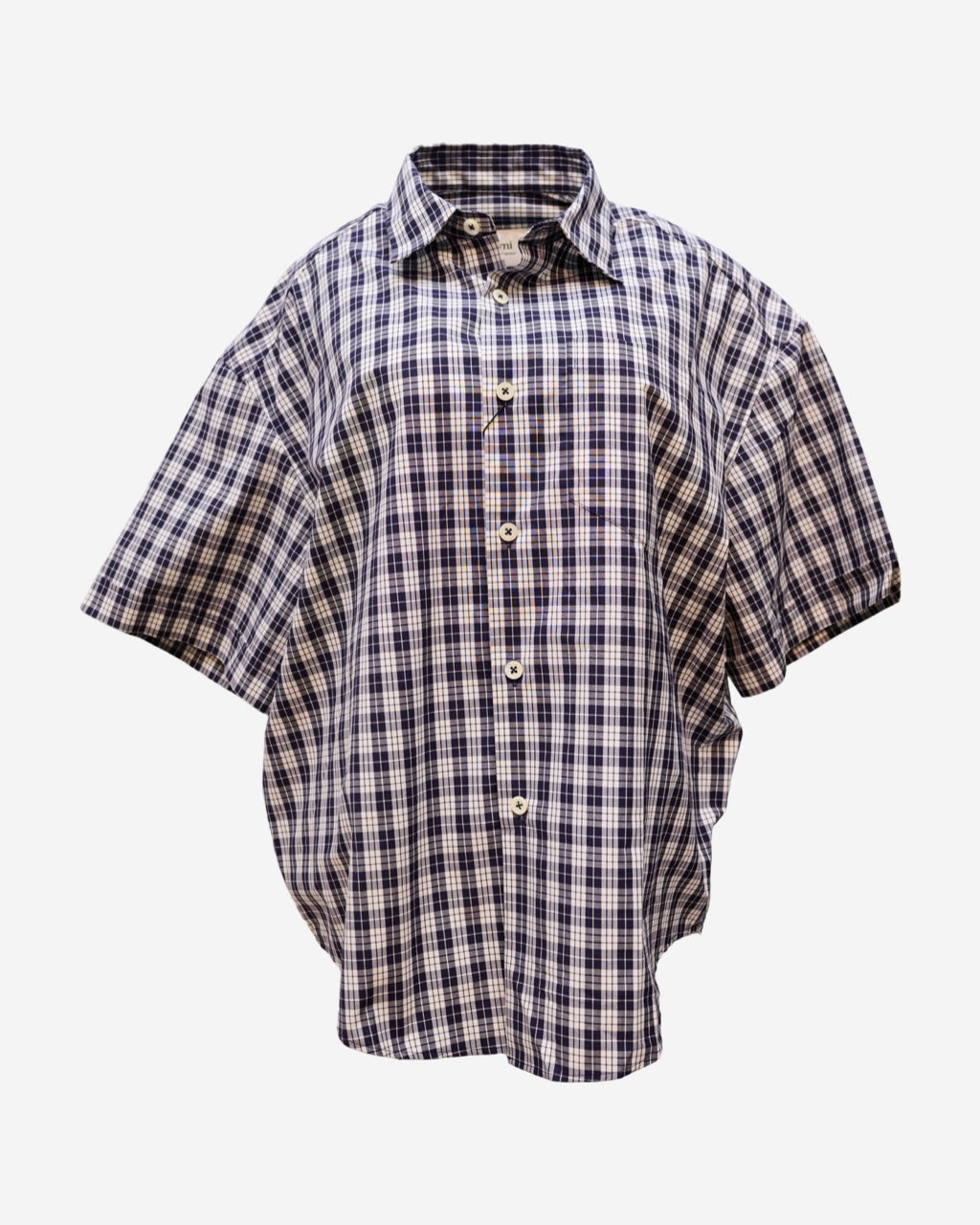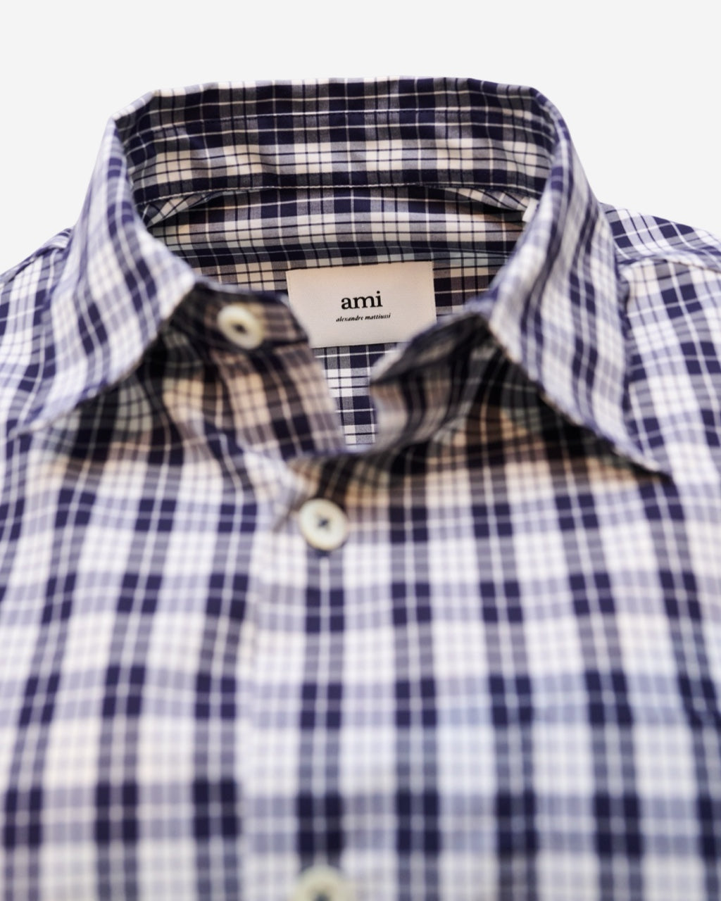 - Description: Ami Paris plaid shirt in shades of blue and white, Italian collar, short sleeves, button-front closure, straight cut