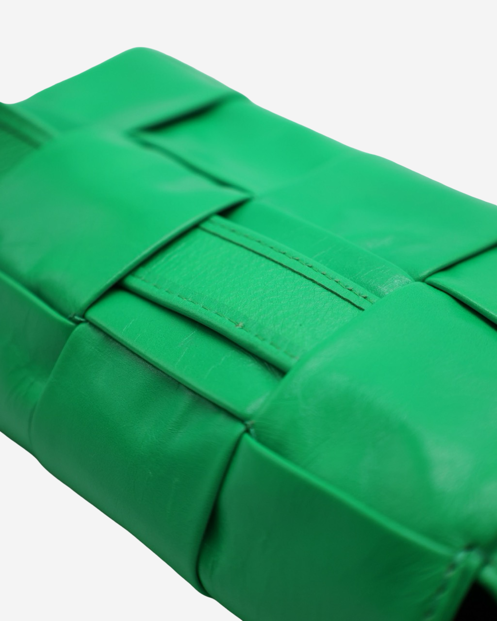 - Description: Bottega Veneta Cassette beltbag in green, crafted in leather with the emblematic quilted Intrecciato, has an adjustable belt-type strap
