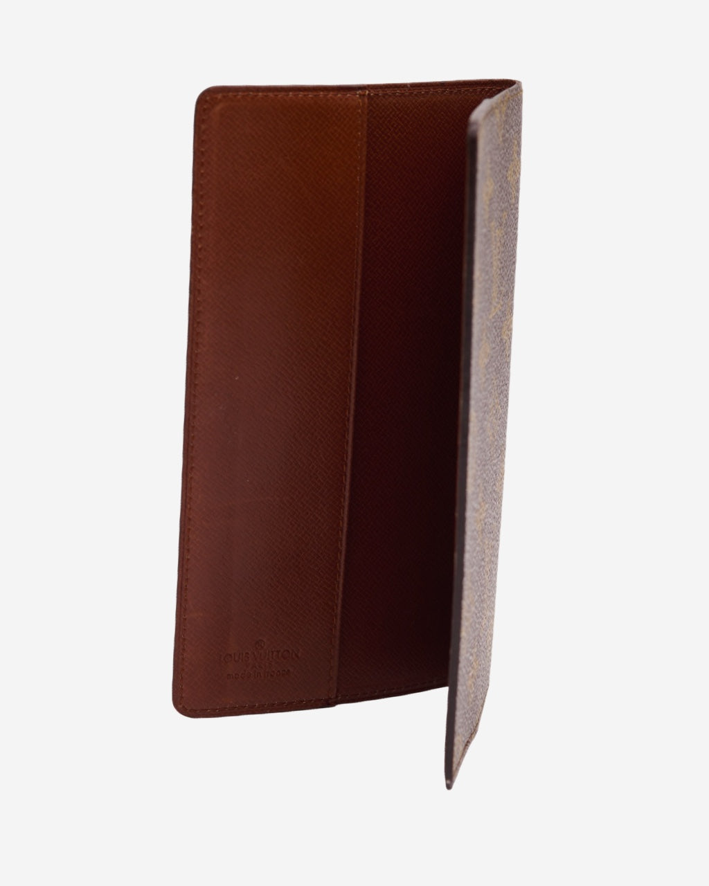 - Description: Louis Vuitton Agenda cover in Monogram Canvas, brown leather lining with signature embossing, two interior compartments
