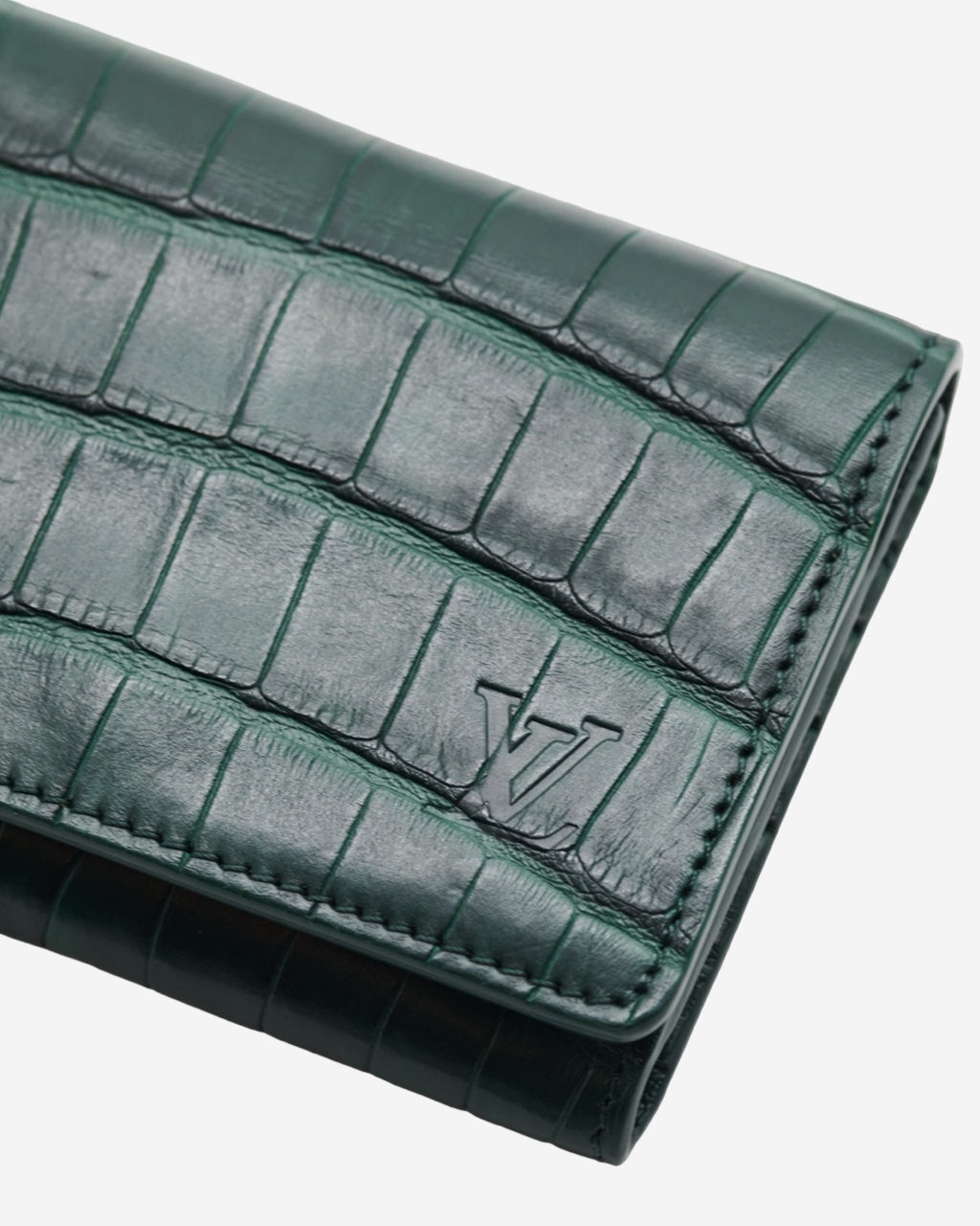 - Description: Louis Vuitton bifold card case with crocodile-effect leather