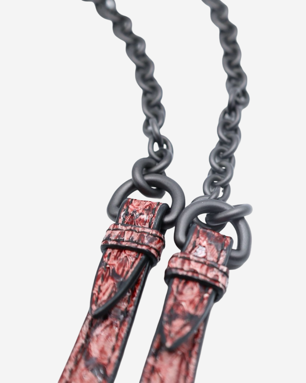 - Materials: Snake-like leather, metal chain