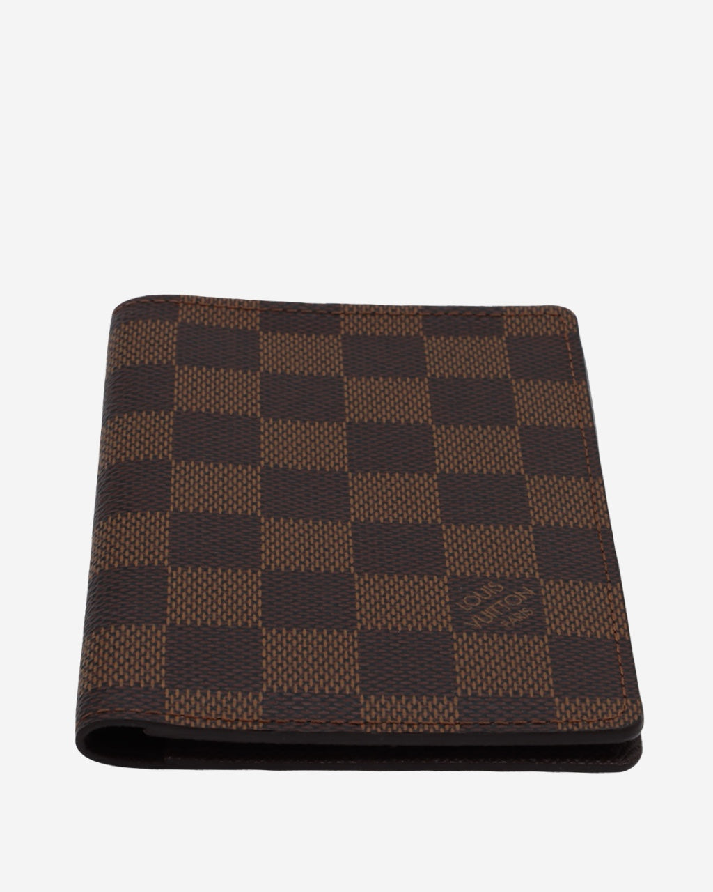 - Description: Louis Vuitton passport holder with Damier Ebène motif and card slots