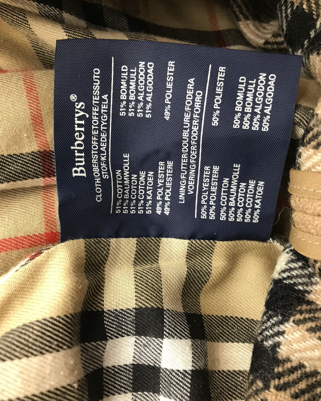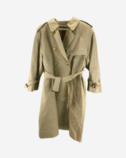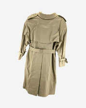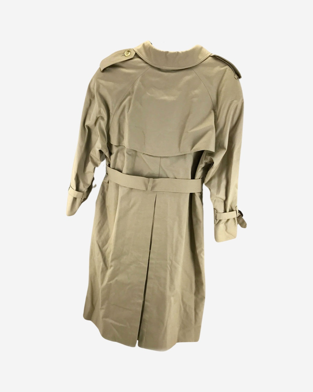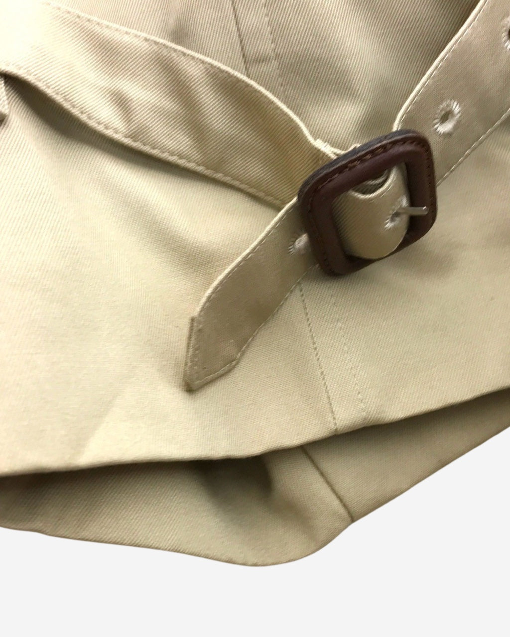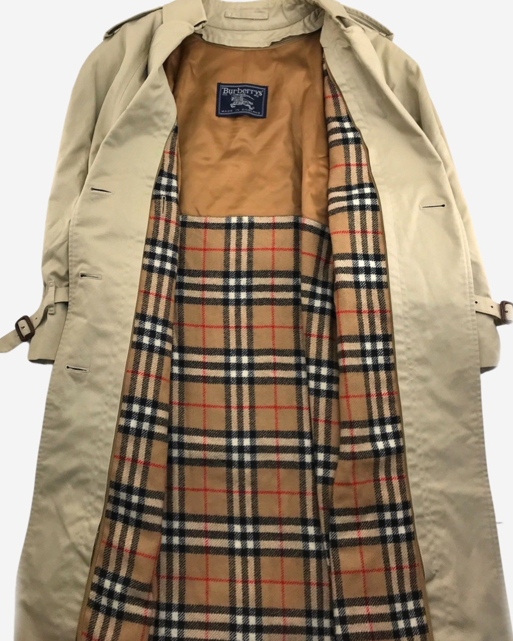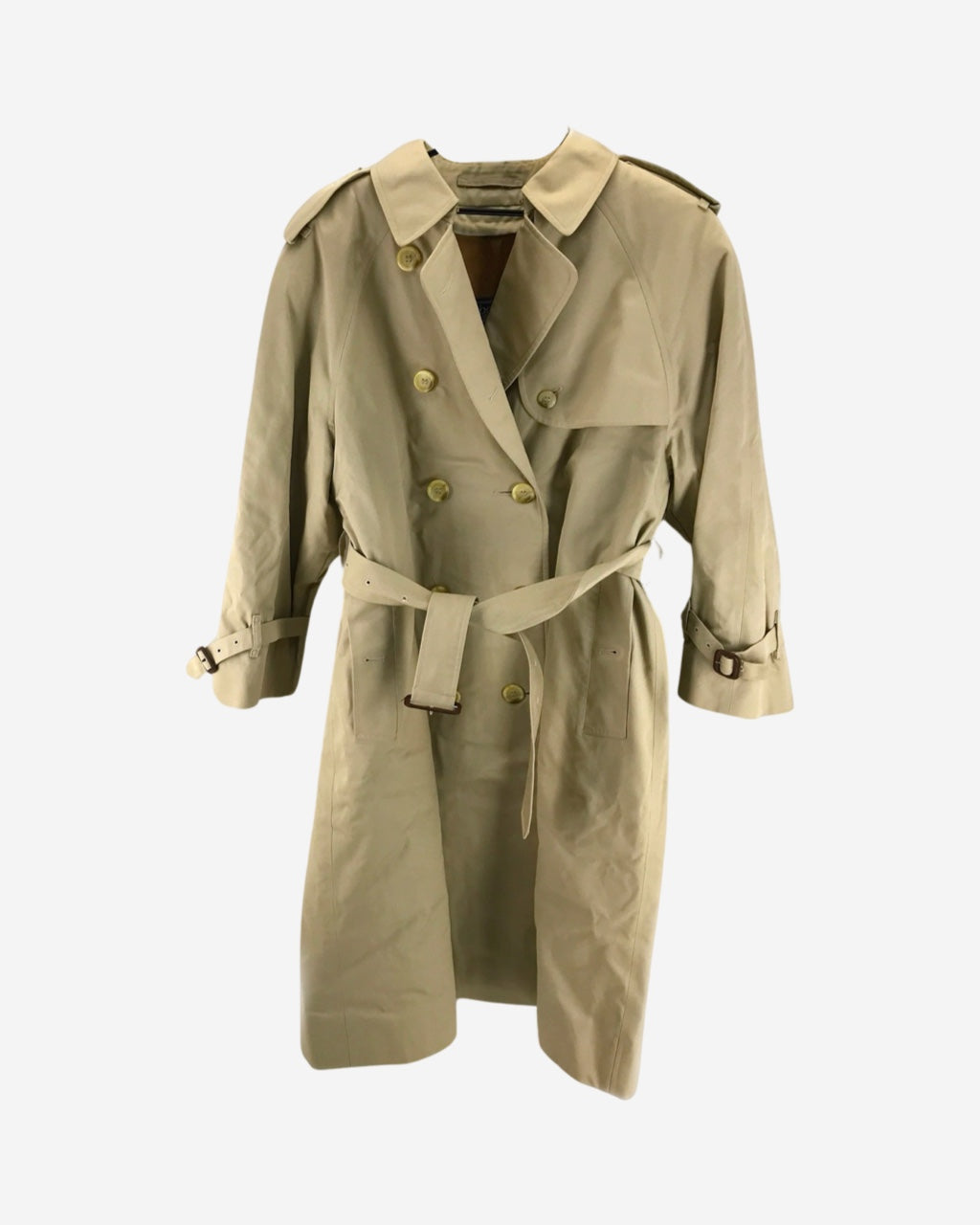 • Description: Trench coat with double-breasted closure, belt detail, strapped cuffs and Vintage Check lining