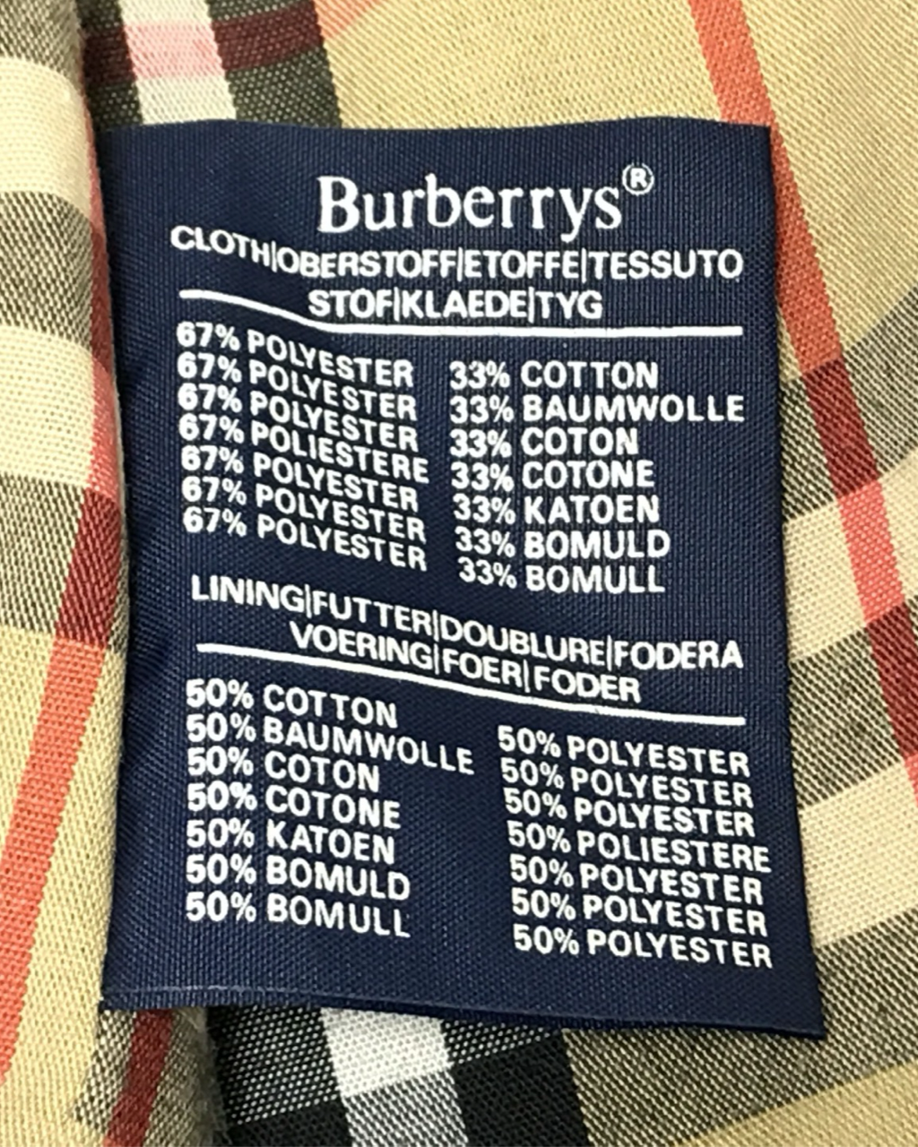 • Description: Trench coat with double-breasted closure and strapped cuffs, lining with Vintage Check motif