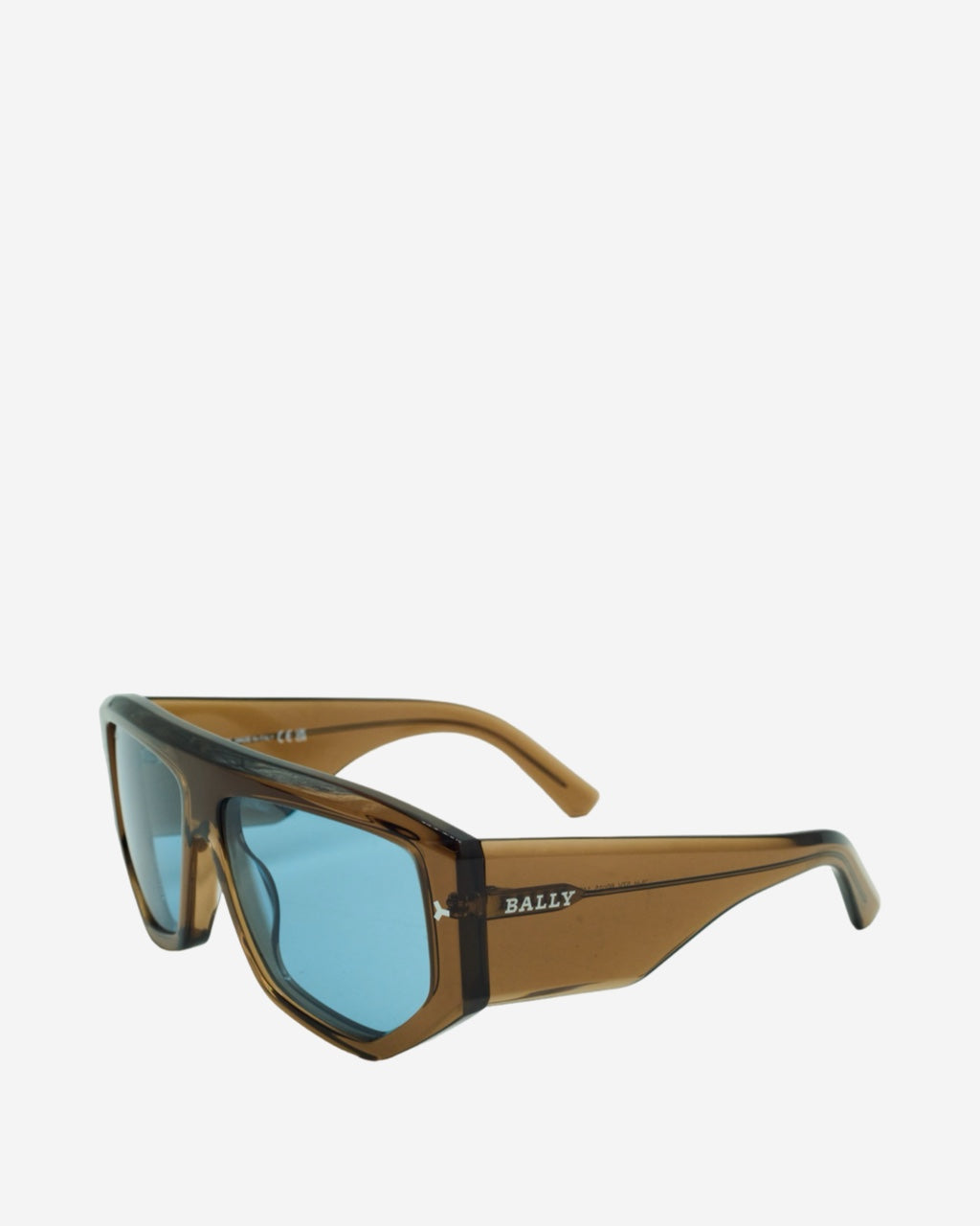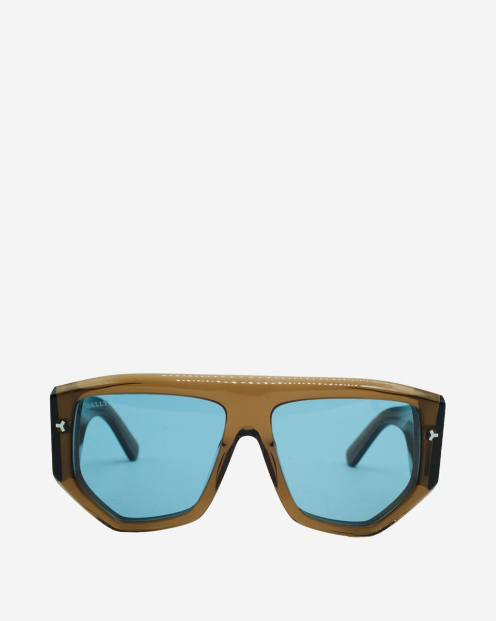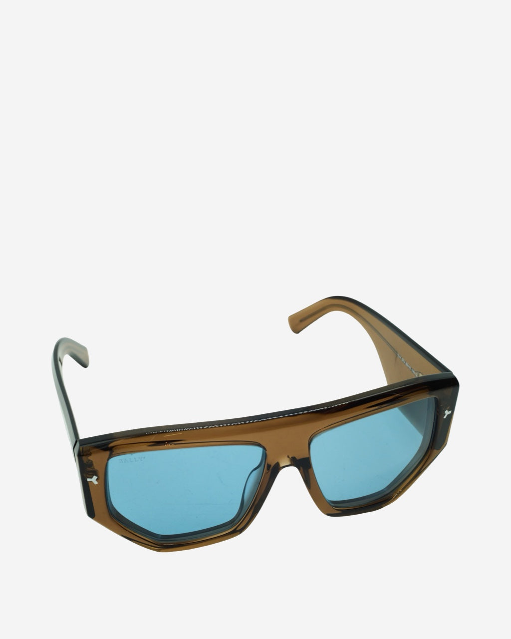 - Description: Bally sunglasses in transparent brown acetate, aviator style, logo engraved on the sides, silver-tone hardware
