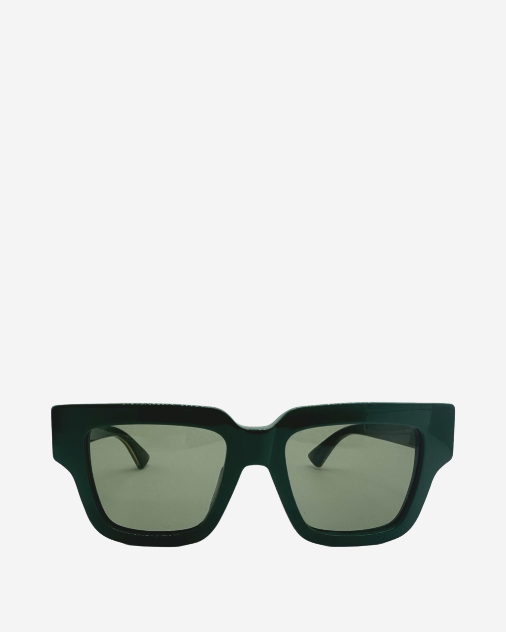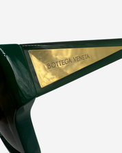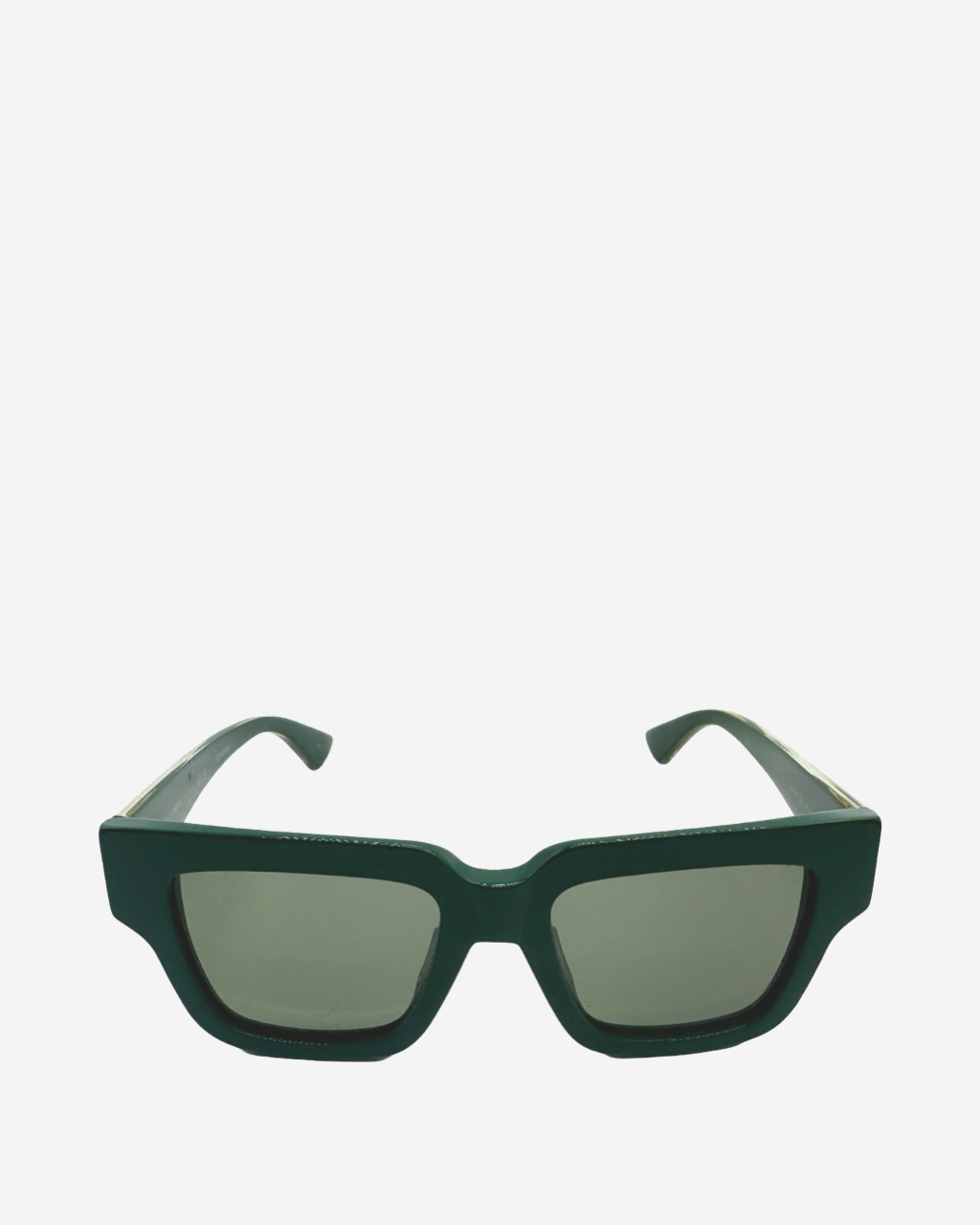 - Description: Green plastic sunglasses, logo on the sides on a plate