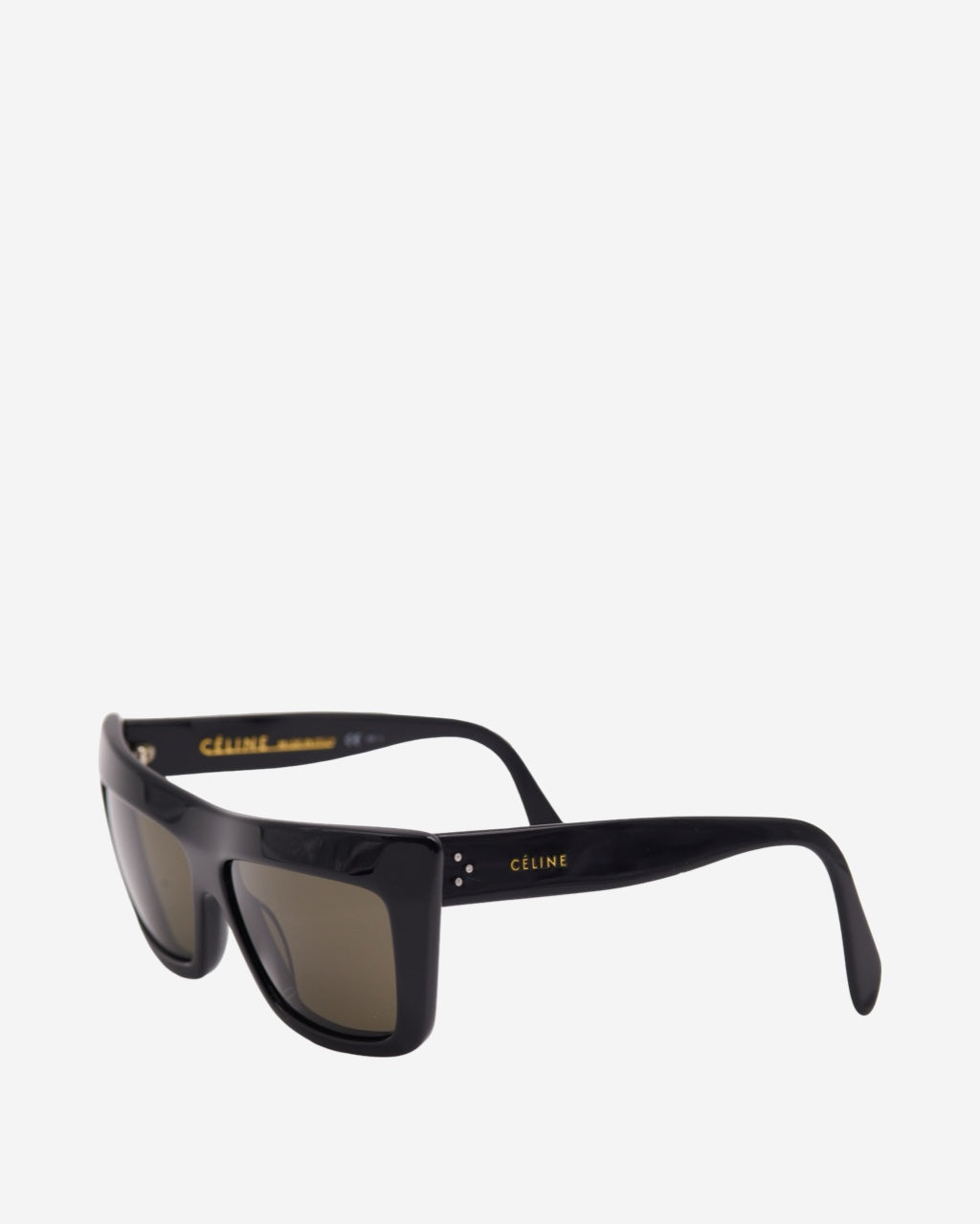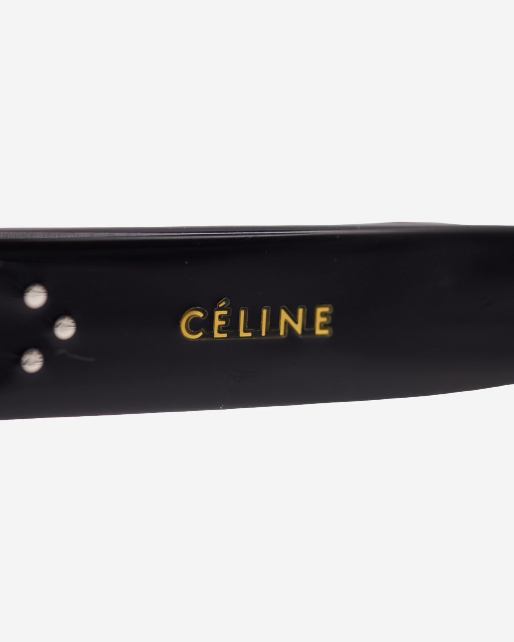 - Description: Celine sunglasses in black acetate, key eye style, logo engraved on the sides and inside, gold-tone hardware
