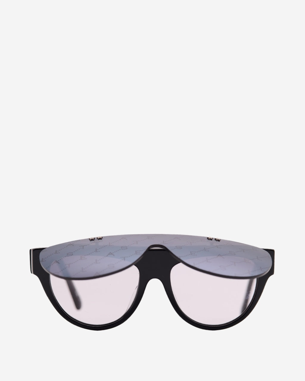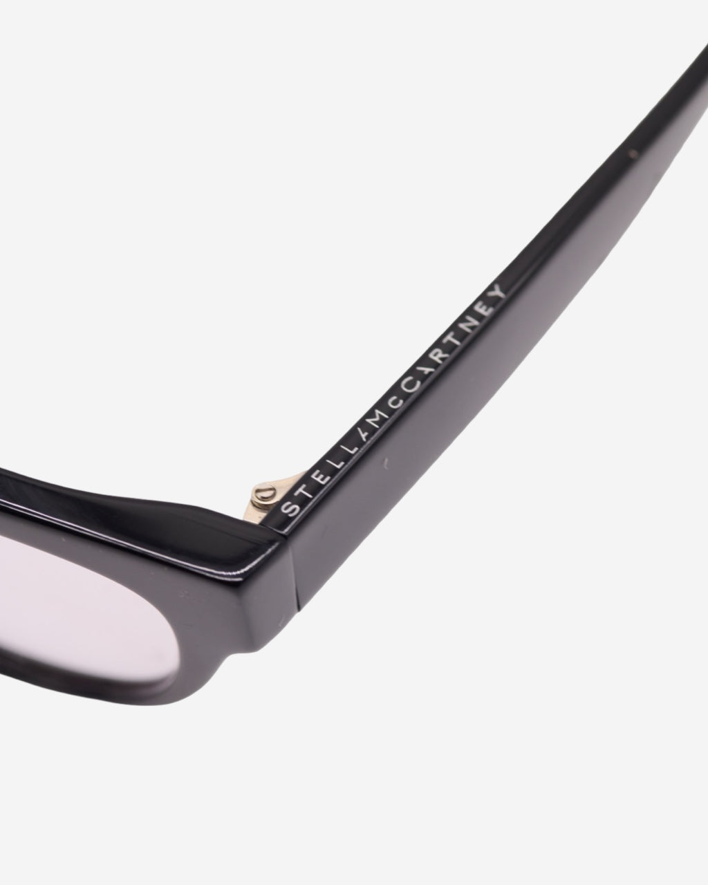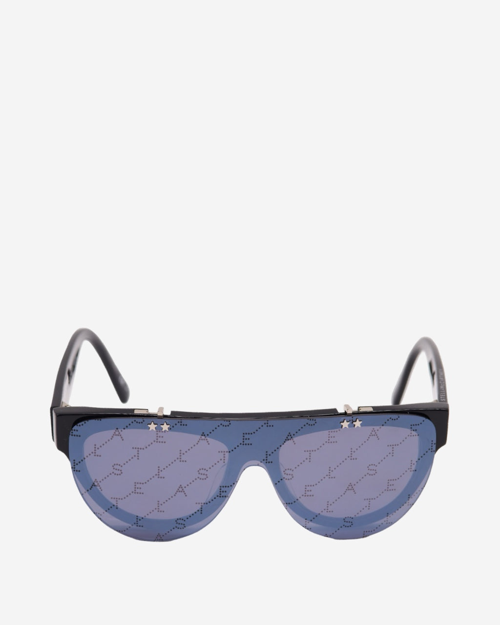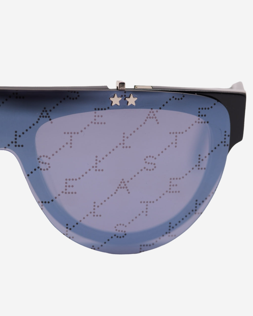 - Description: Stella McCartney sunglasses in black acetate, full frame, metal star plates on the front, logo engraved on the lens, silver-tone hardware