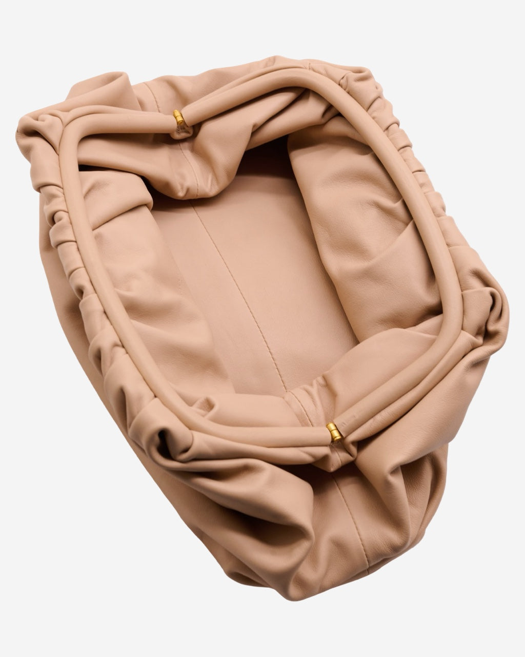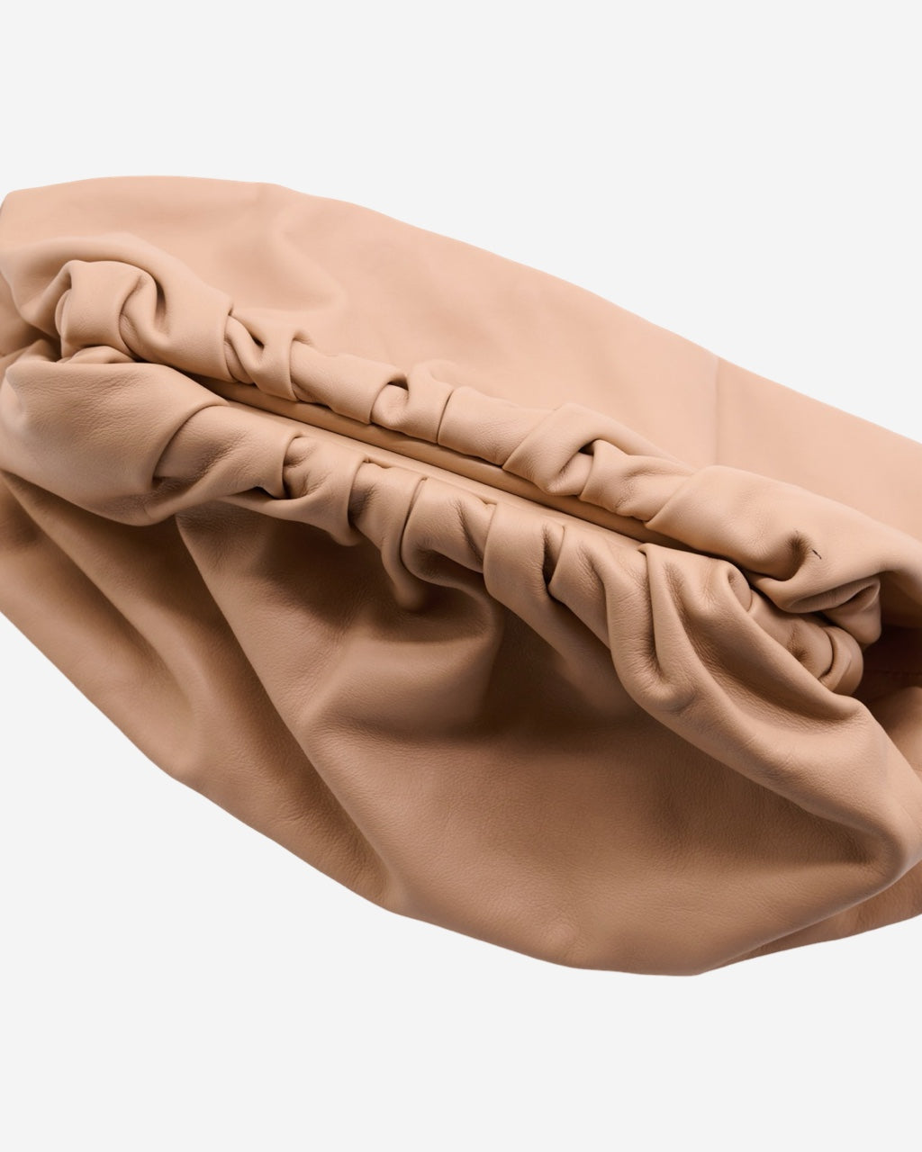 - Description: Bottega Veneta handbag in beige leather, ruched detail, magnetic closure, main compartment and ruched design, gold-tone hardware