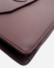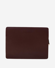 - Description: Pouch in logo-colored leather, front logo with pocket, top closure, gold-tone hardware