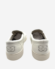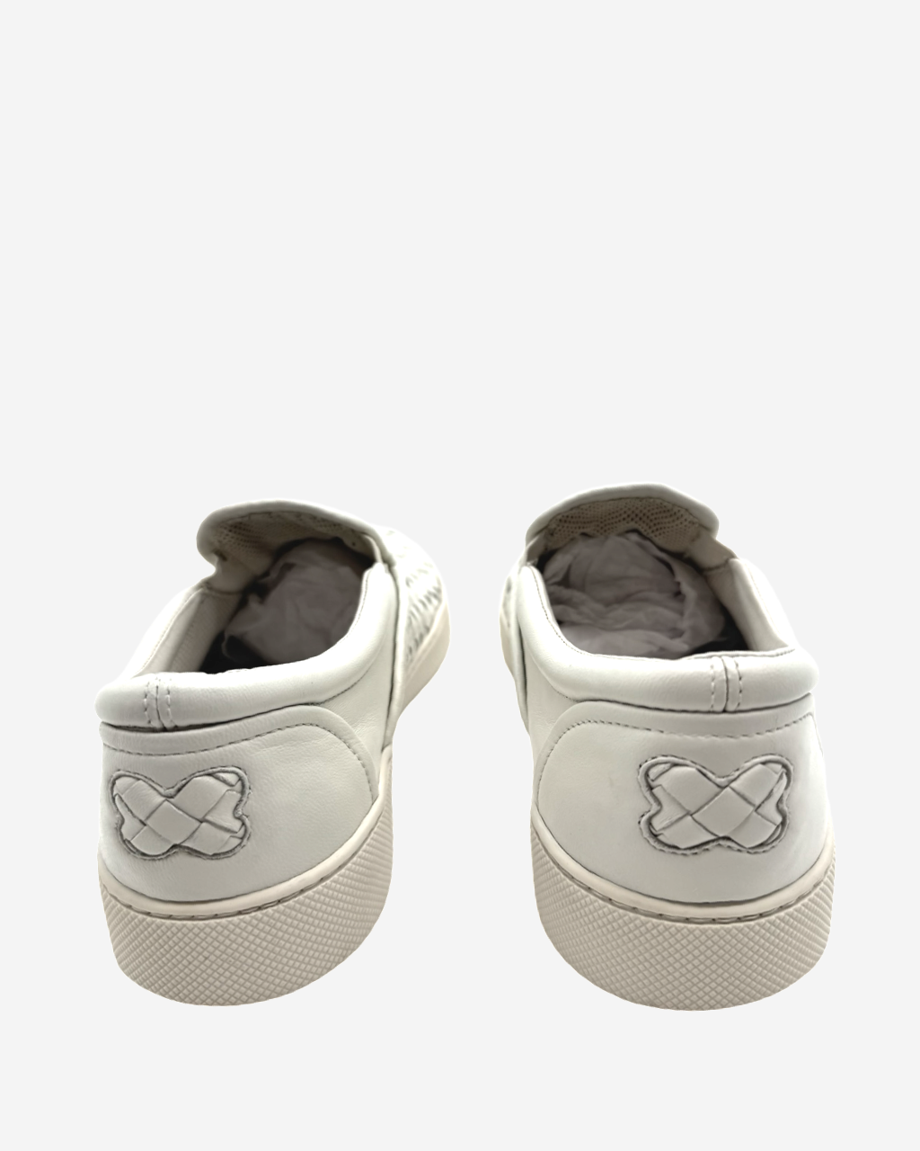 - Description: White leather sneakers with intrecciato pattern, round toe, rubber sole