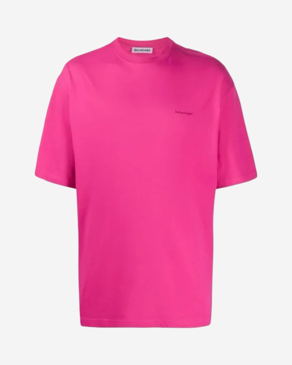- Description: Pink cotton T-shirt, front logo, relaxed fit, short sleeves