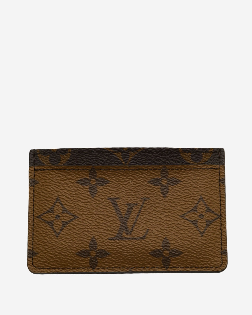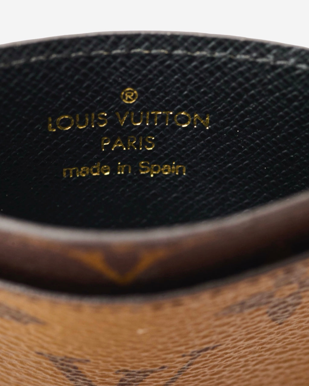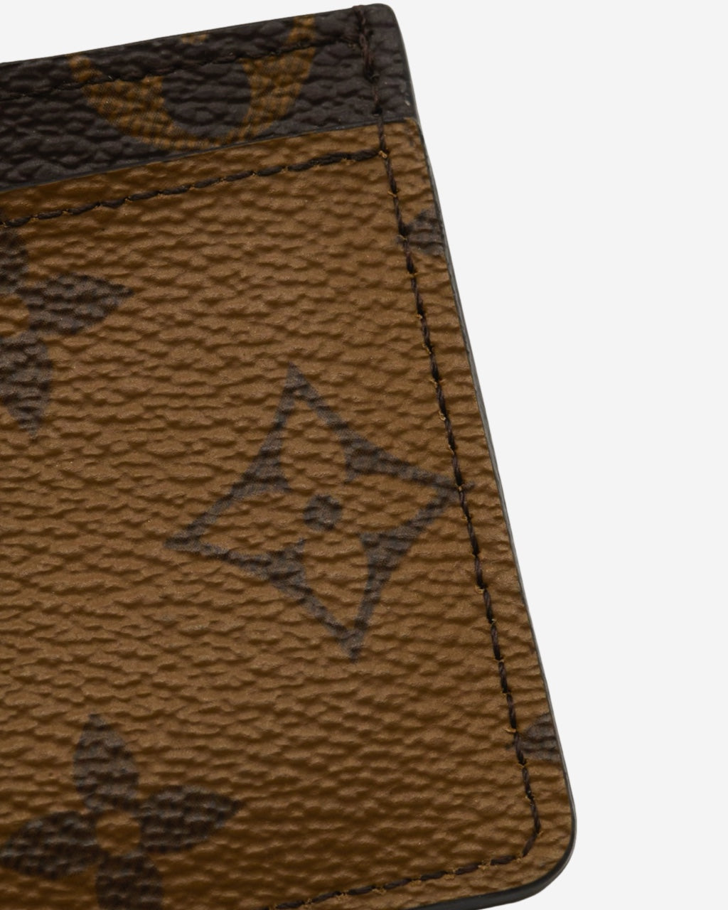 - Description: Louis Vuitton card holder in Monogram Reverse Canvas, three central compartments, logo engraved inside