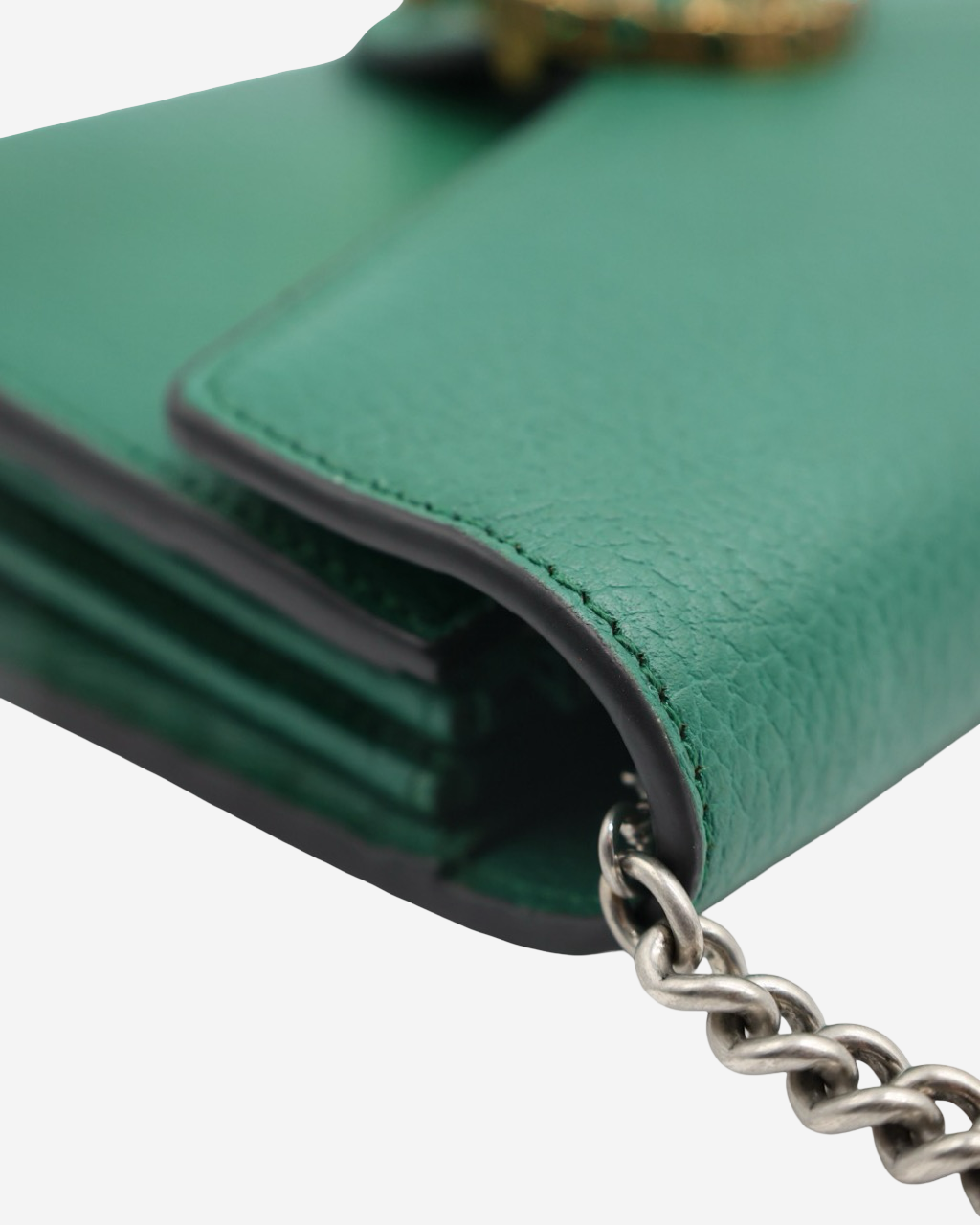 - Description: Gucci Wallet on Chain Dionysus green bag, compact design includes a practical metal chain that allows it to be worn over the shoulder or crossbody, features functional compartments for cards and essentials