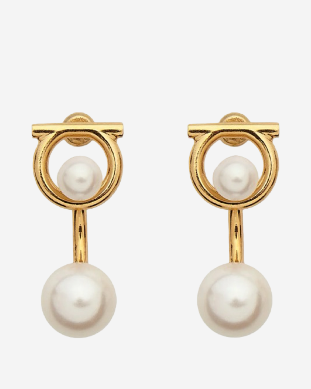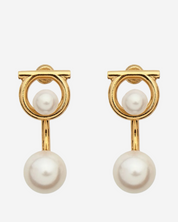 • Description: Ferragamo earrings in the shape of the signature logo with dangling pearls