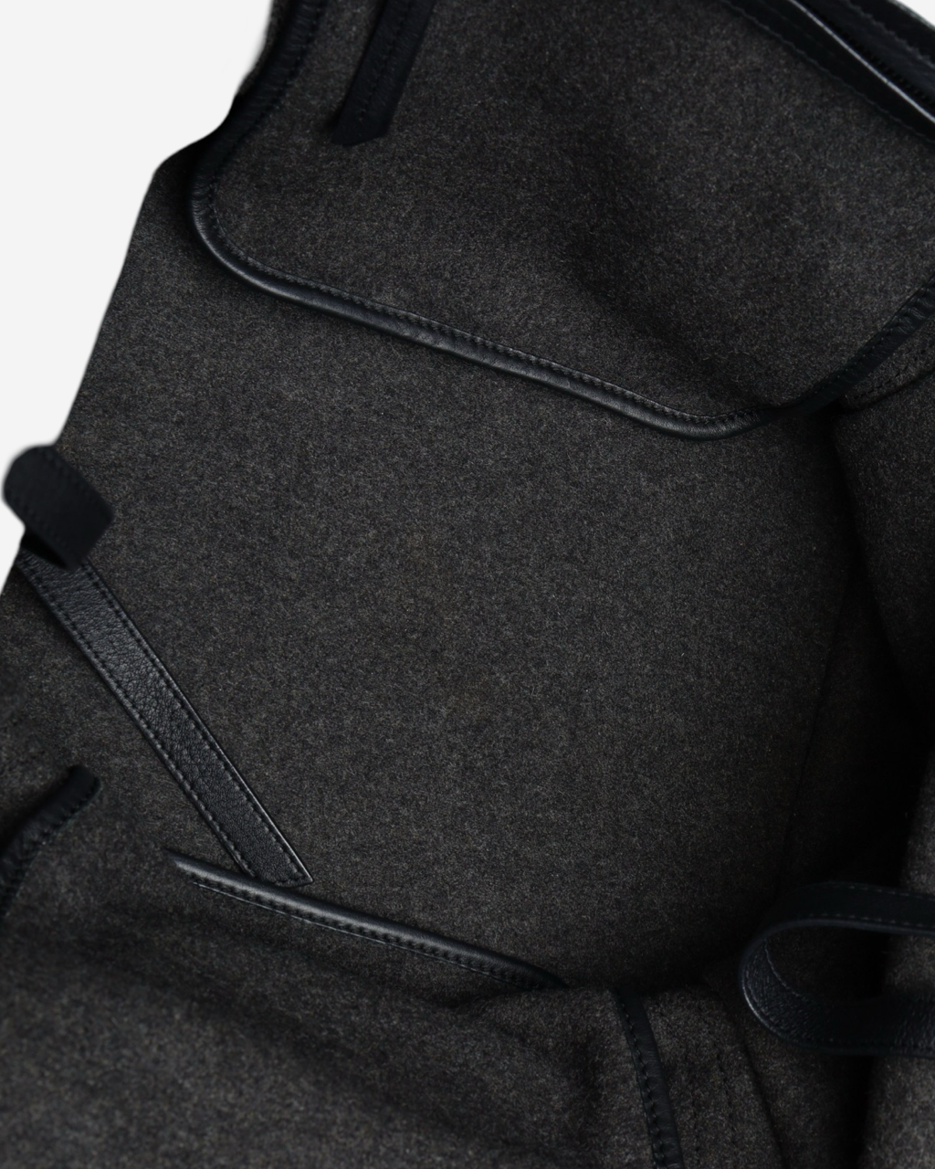 • Description: Tote bag with two top handles, zipper closure, one exterior zipper pocket on the front and main compartment, silver hardware