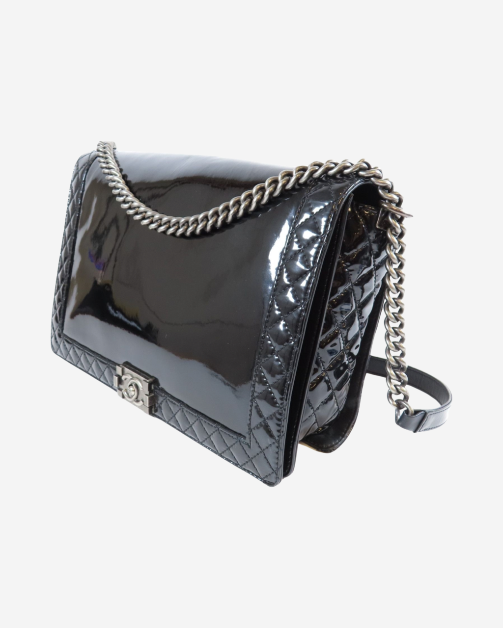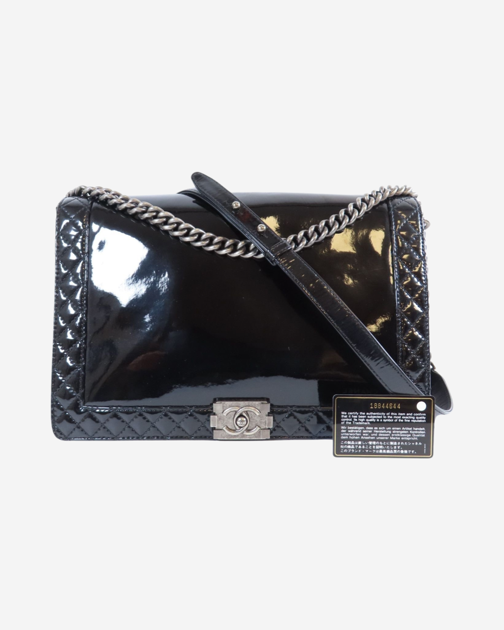 • Description: Medium Boy bag, adjustable chain shoulder strap, front flap closure, signature Boy snap closure, main compartment and silver hardware.