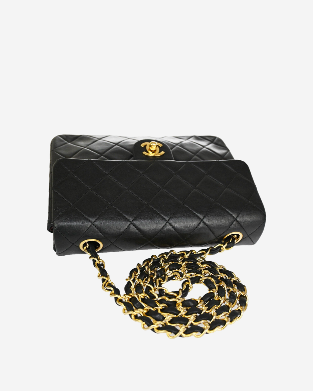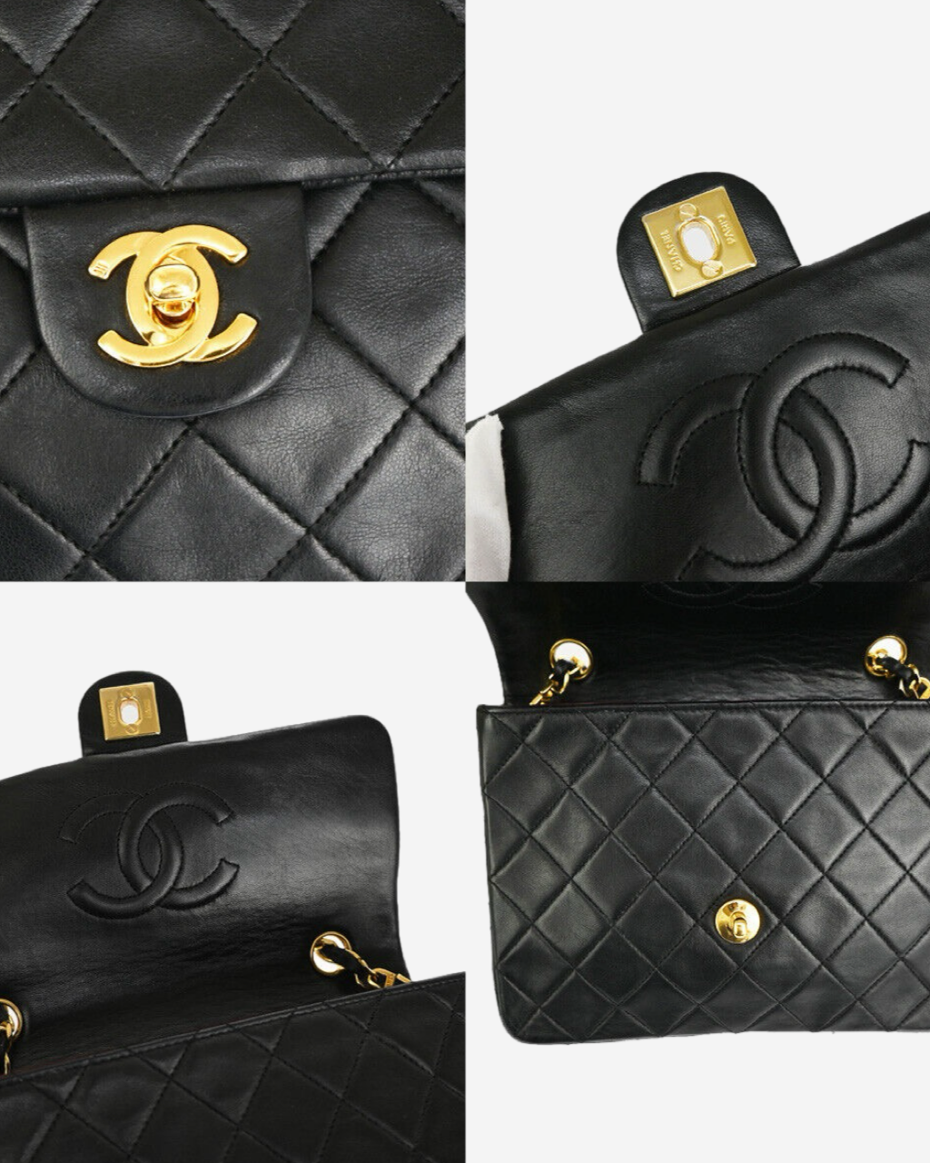 - Description: Black shoulder bag, 24k gold-plated CC clasp, wine-colored interior, gold-colored hardware