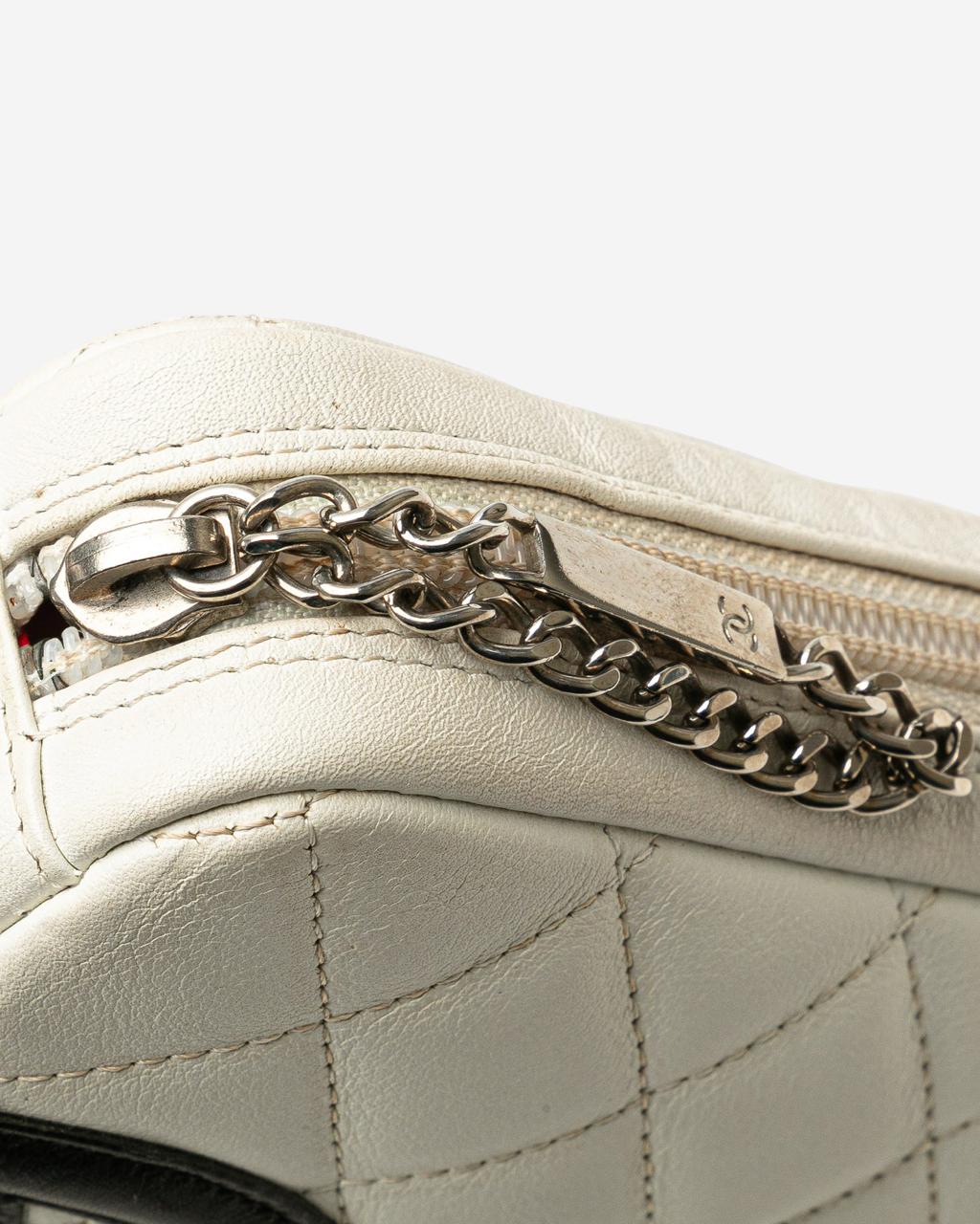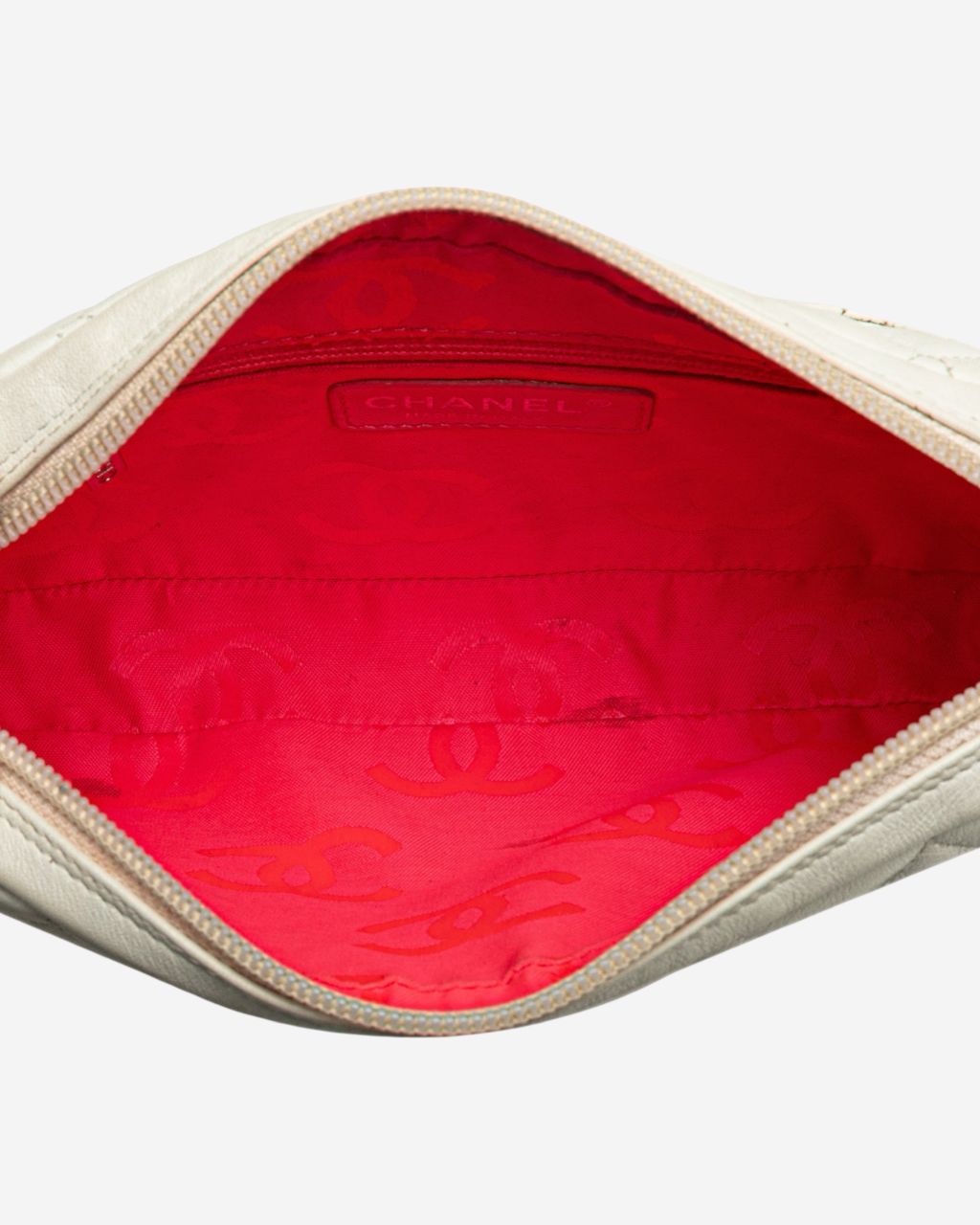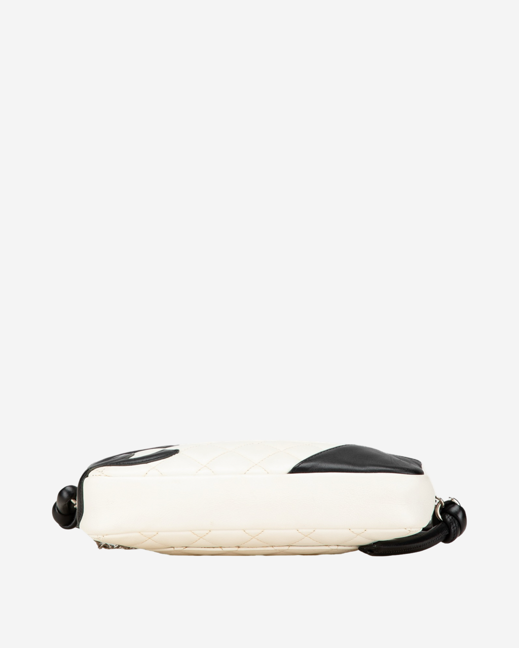 - Description: Shoulder bag with fixed handle, CC logo detail on front, top closure, pink textile lining, silver-tone hardware