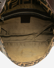 - Description: Fendi bag in brown canvas, signature FF clasp on the front, fixed handle with chain and leather, flap opening, brown interior lining, silver-colored hardware