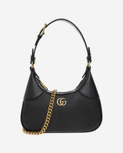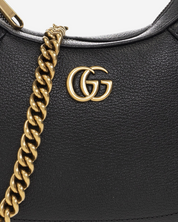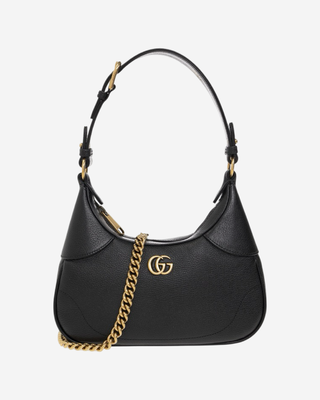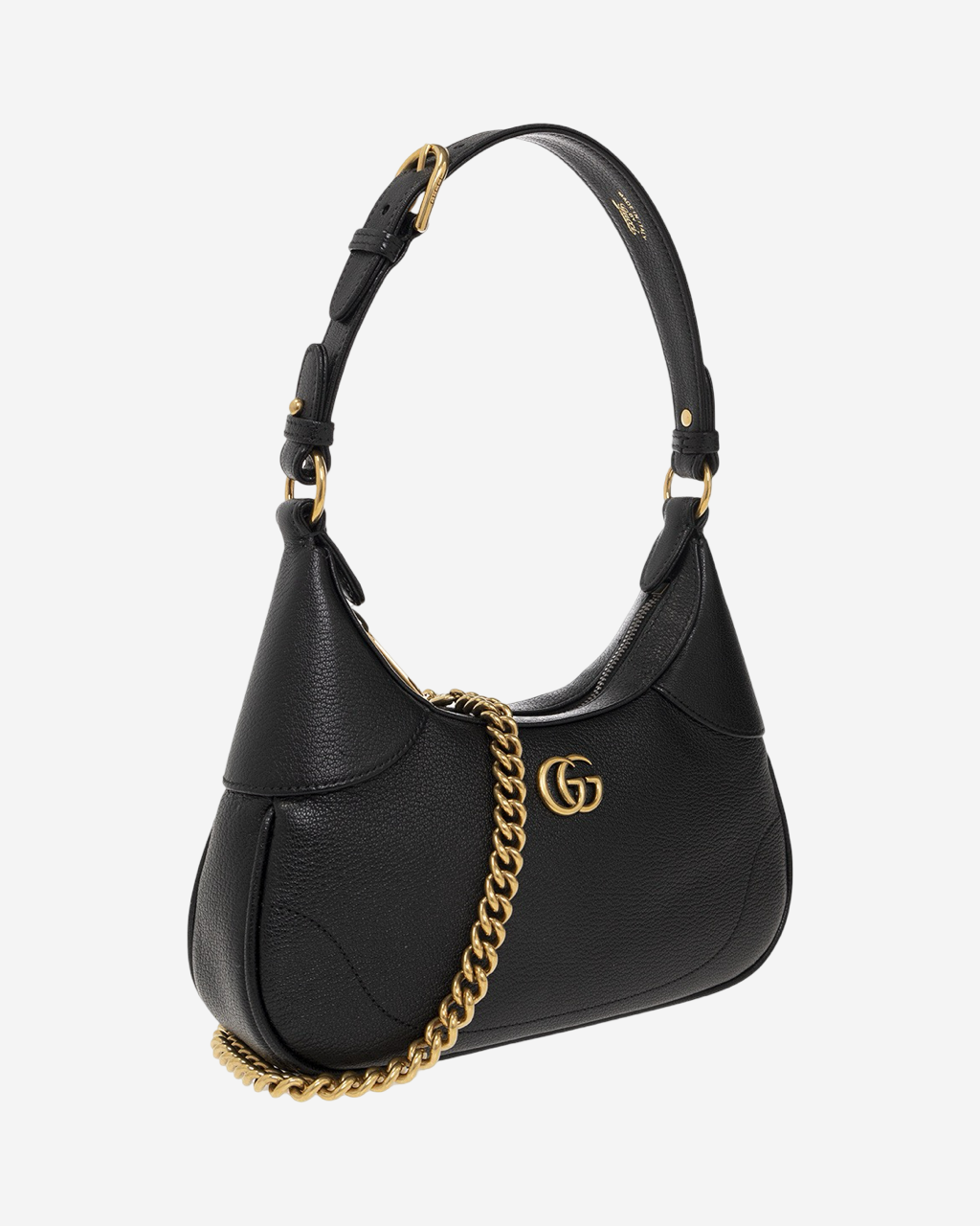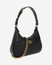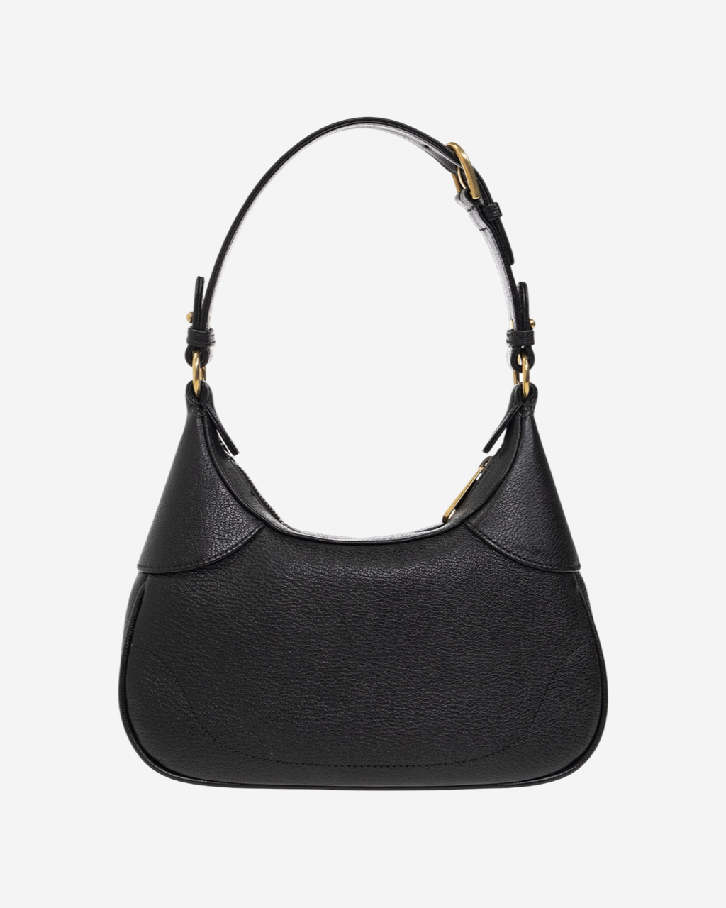 - Description: Leather shoulder bag, one adjustable central handle, central closure and gold hardware