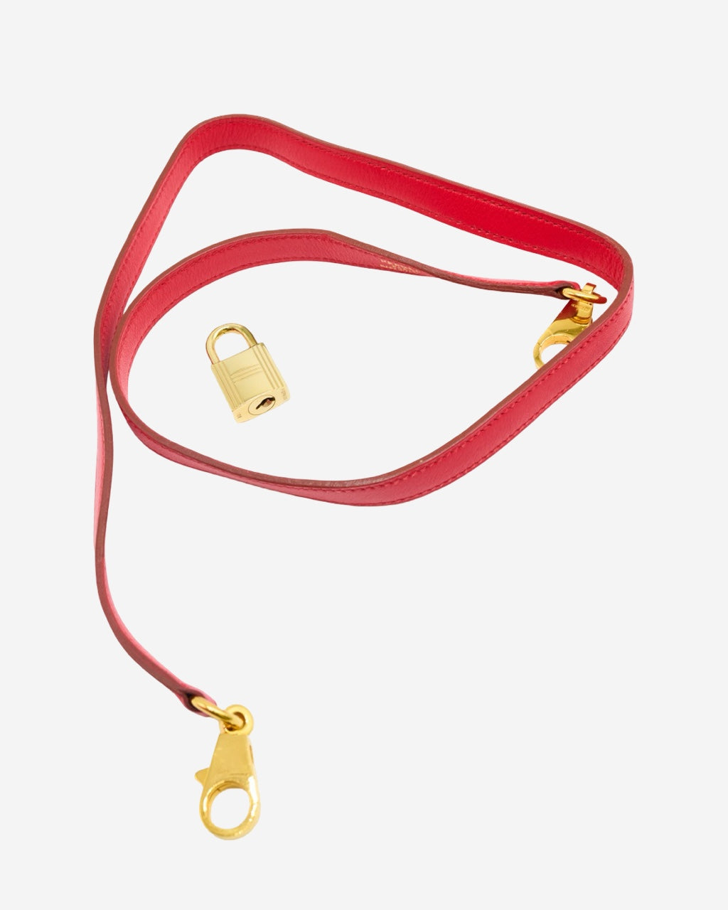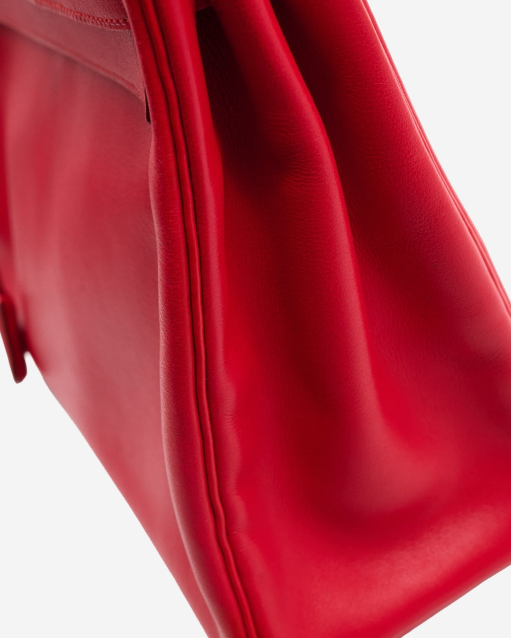 - Description: Hermès handbag in red leather, main opening with flap and metal front clasp, fixed top handle, leather interior lining with pocket and two-way closure, gold-tone hardware
