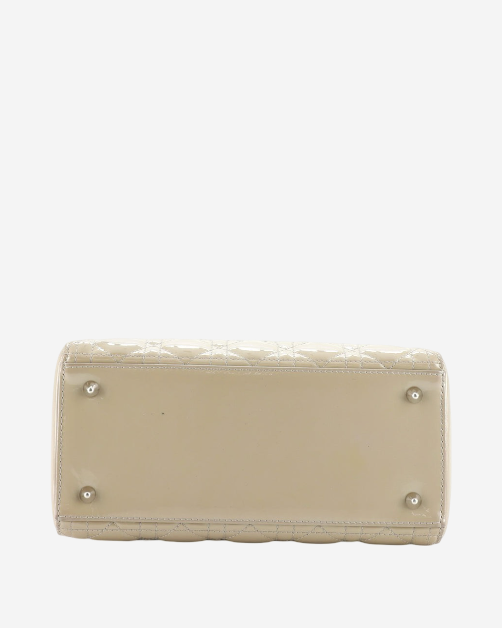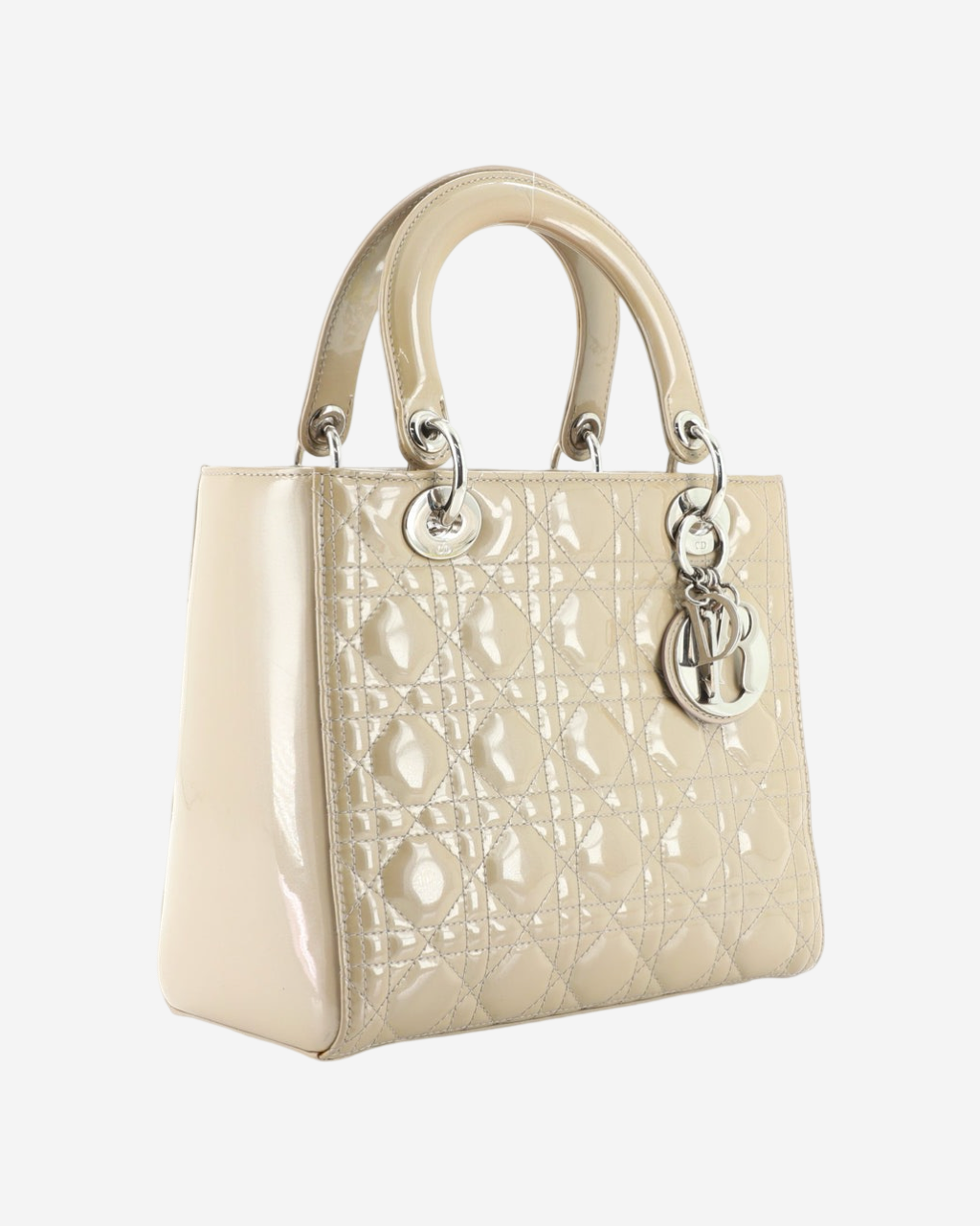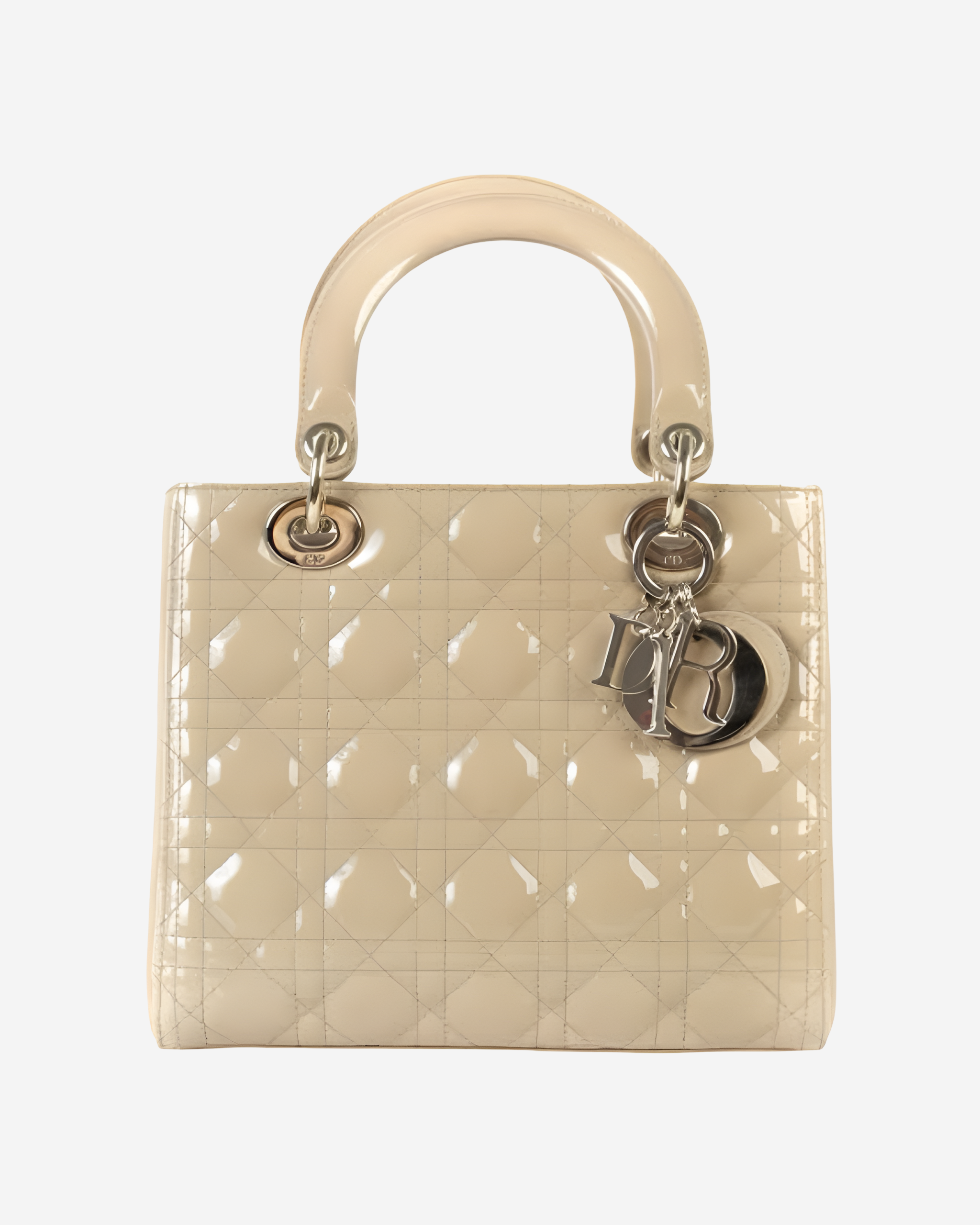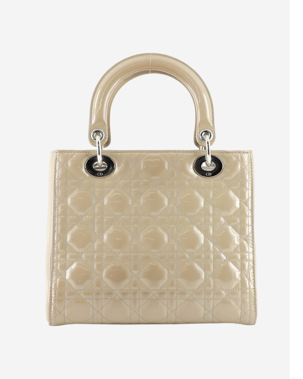 - Description: Handbag with double fixed handle, front signature monogram, beige interior, interior zip pocket, silver-colored hardware