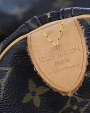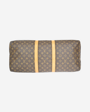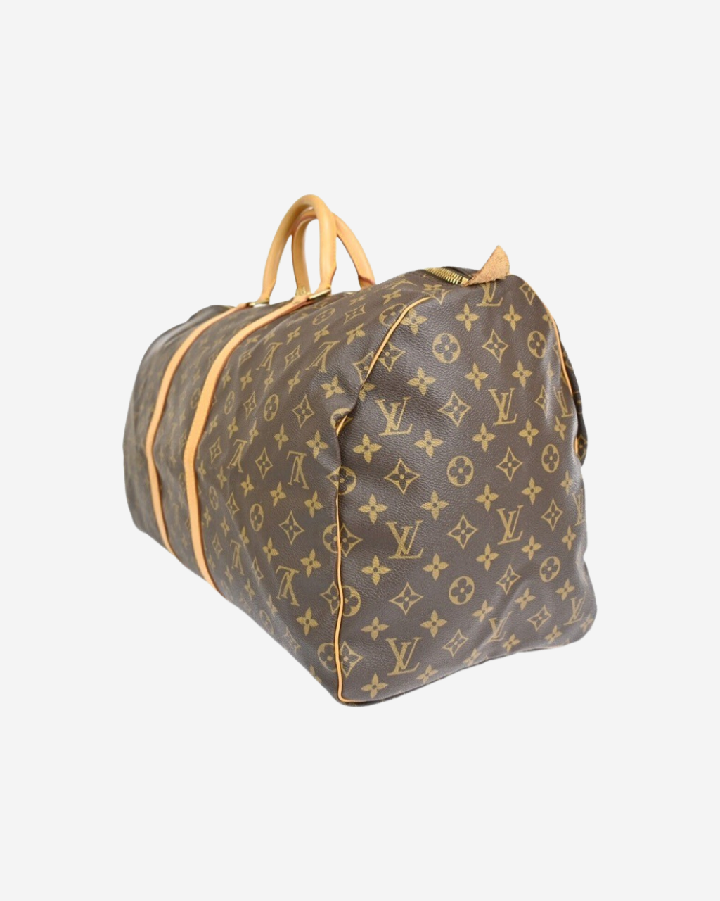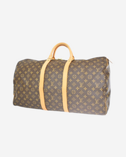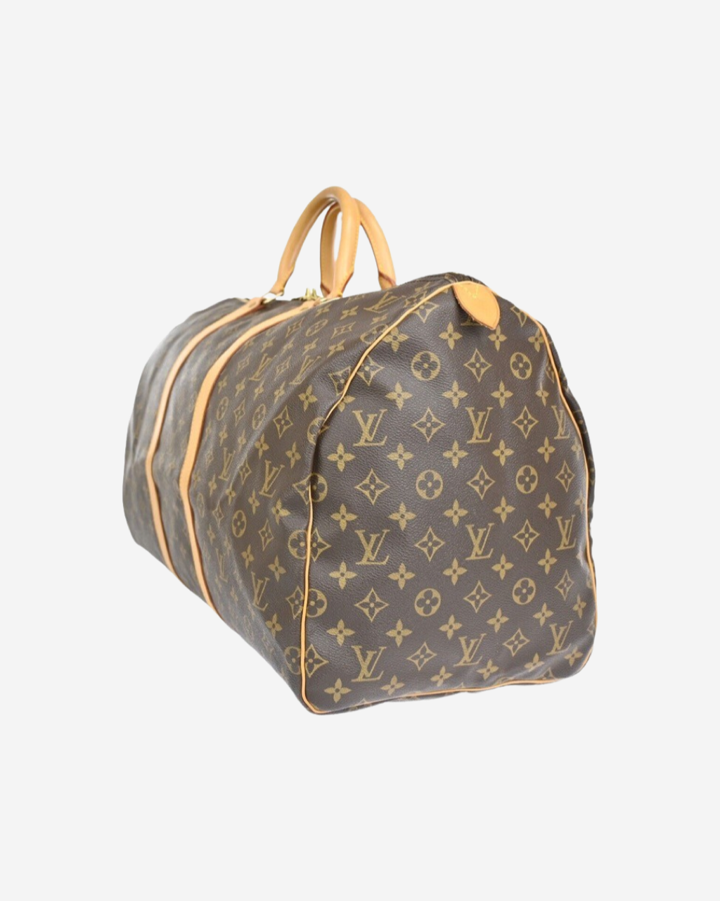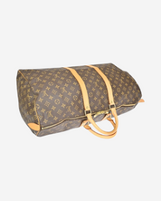 • Description: Keepall handbag in leather, with two braided handles at the top, two-way closure, main compartment, gold hardware.