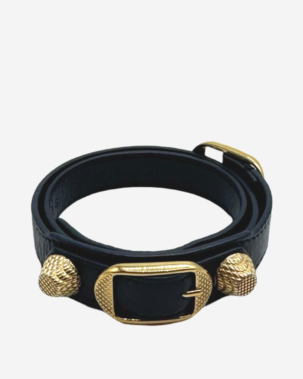 - Description: Blue leather bracelet, clasp adjustment, stud motif, gold-tone hardware