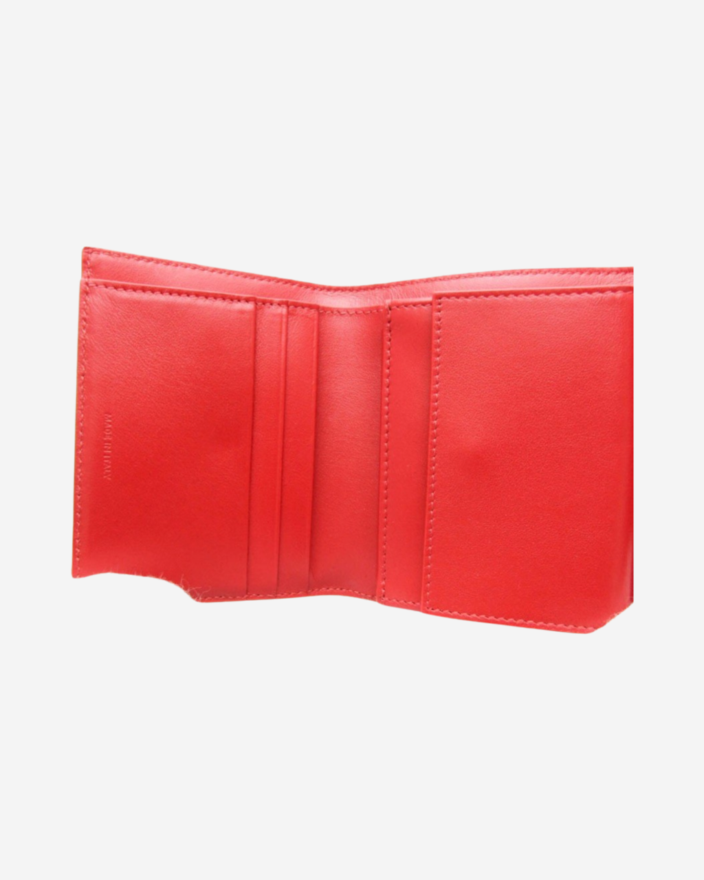 • Description: Leather wallet, front closure with press stud, main compartment for bills and cards.