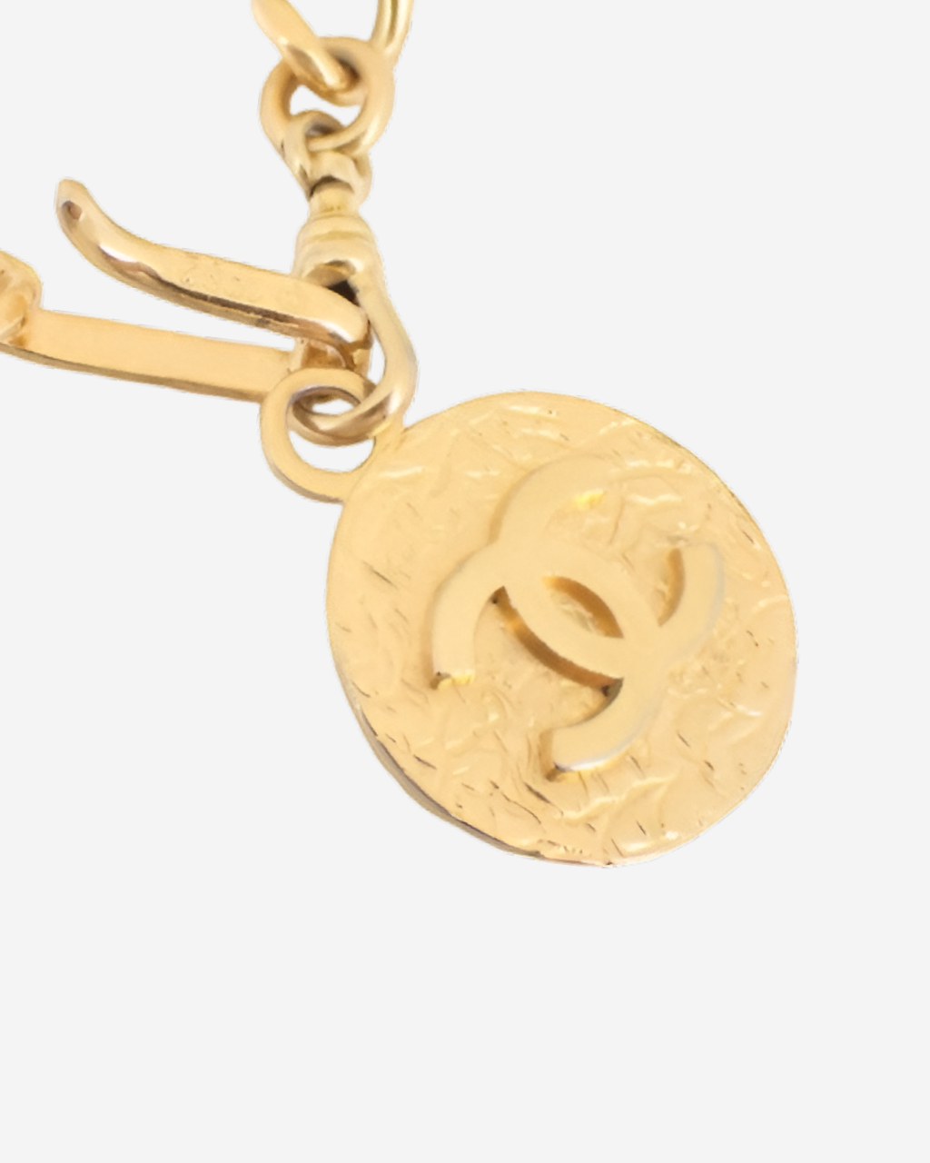 • Description: Chanel gold-colored chain belt, medallion pendant with characteristic CC logo