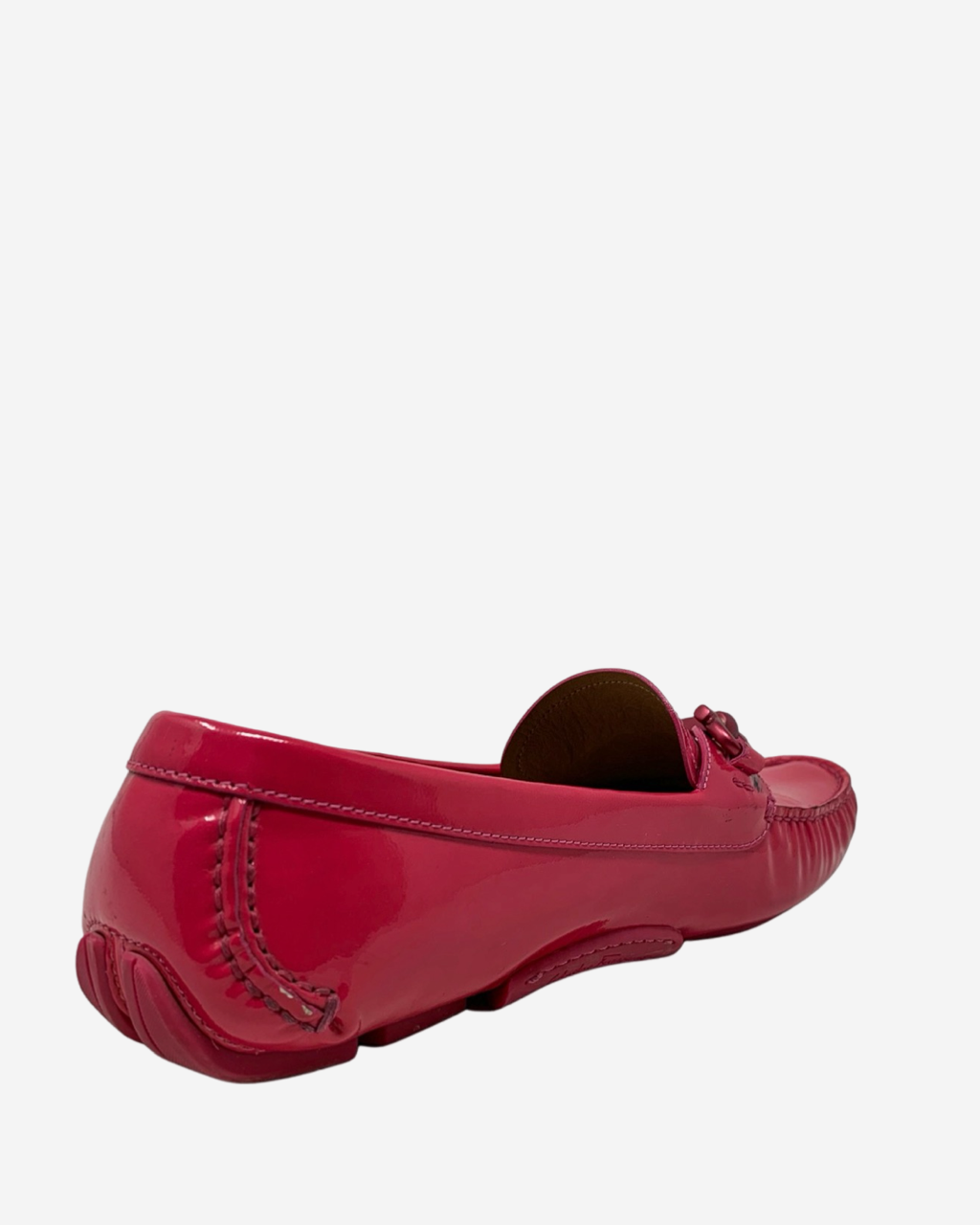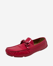 - Description: Drivers in red patent leather, rubber sole, characteristic logo on the front