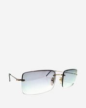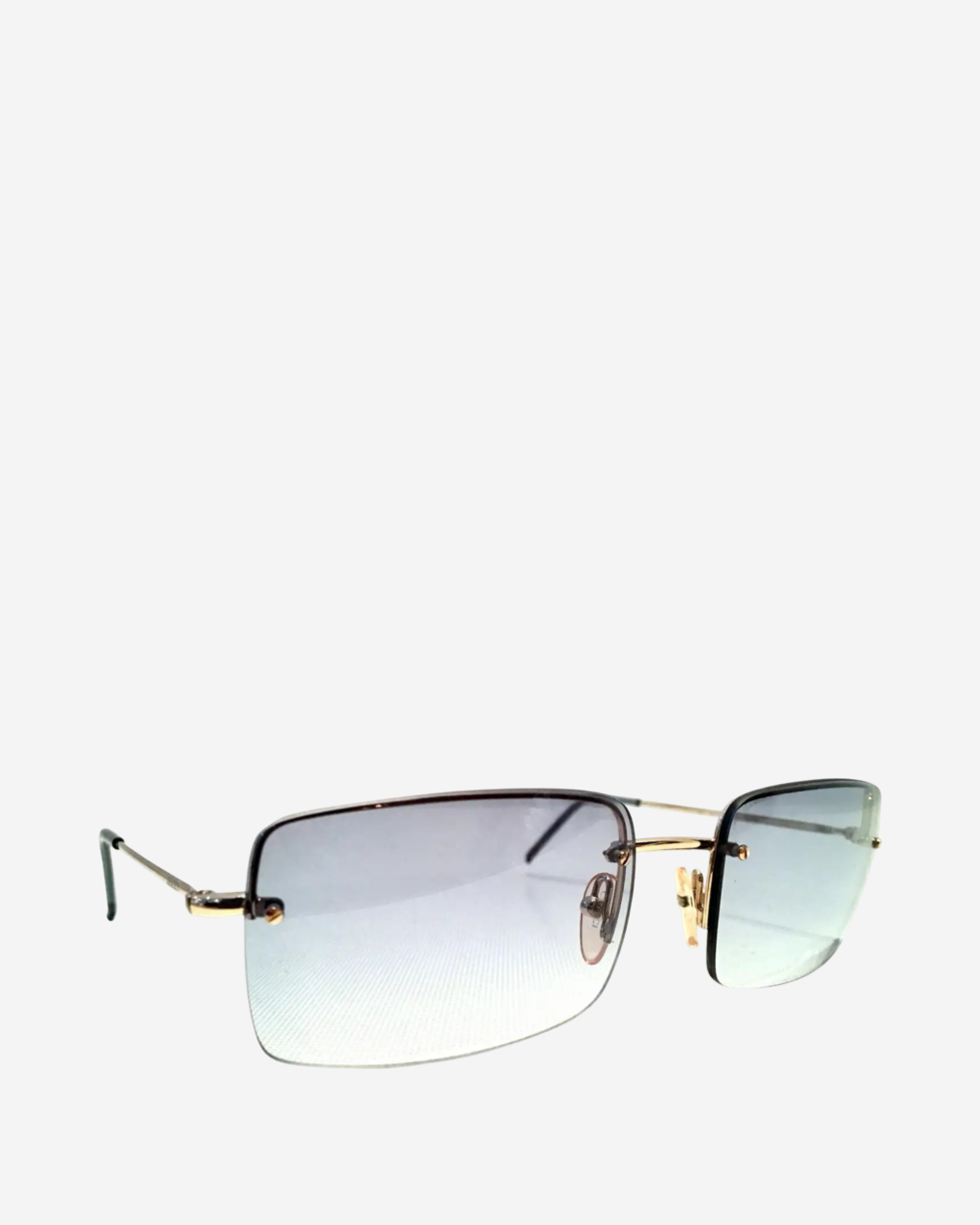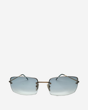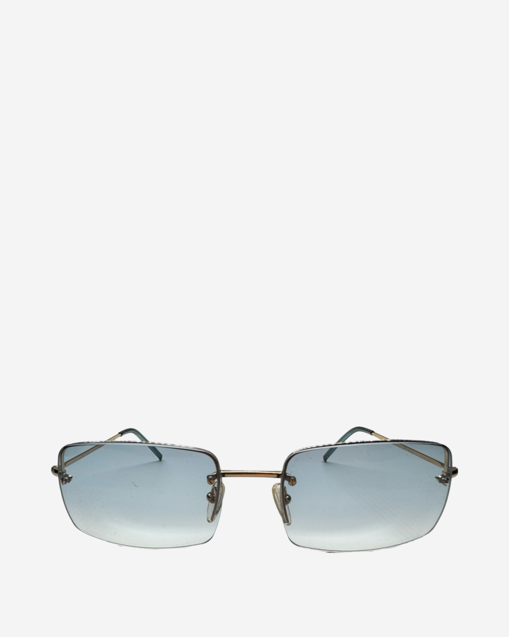 - Description: Gold steel sunglasses with blue lenses, rectangular shape