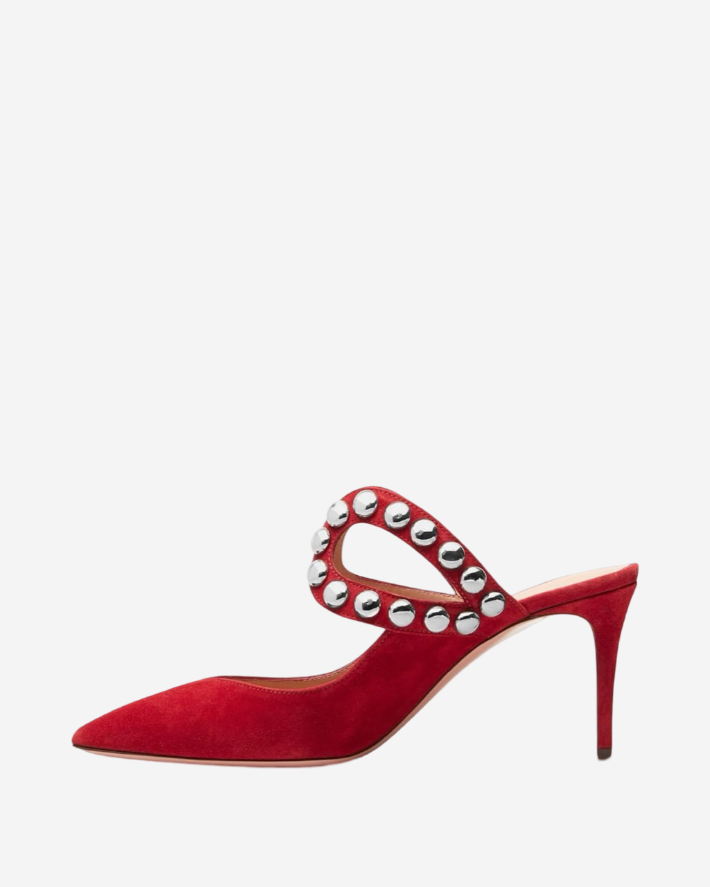 - Description: Pointed toe heels, stud details, stiletto heel, silver hardware