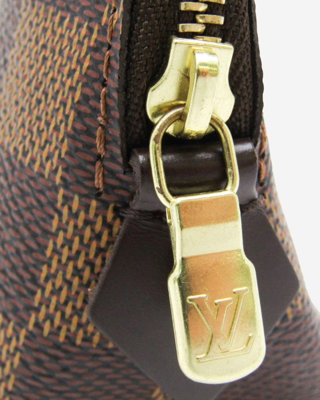 • Description: Damier Ebene pouch, top zipper closure, main compartment.