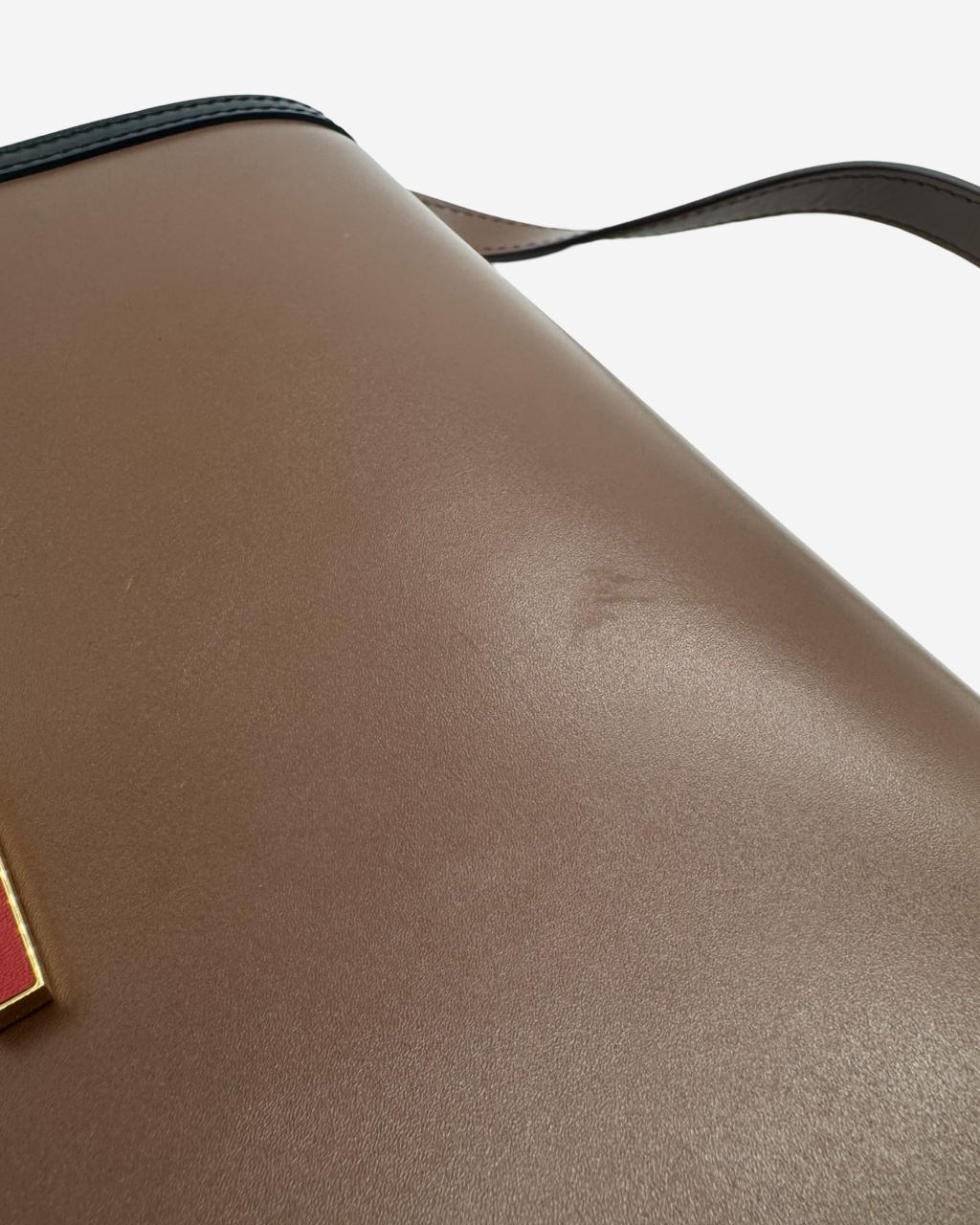 Descripción: Bolsa cruzada en piel bicolor, abertura con solapa, logo característico frontal en color rojo, strap largo de piel