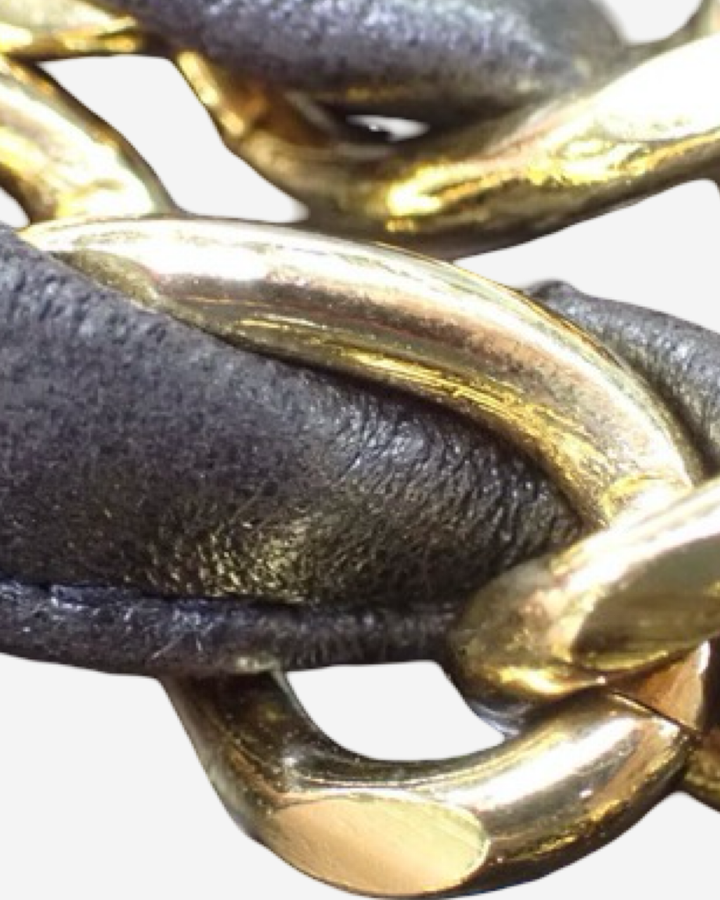 - Descripción: Bolsa de hombro en piel color negro, broche CC frontal con baño de oro de 24k, abertura con solapa, forro interior en piel color vino con bolsillo, hardware en tono dorado