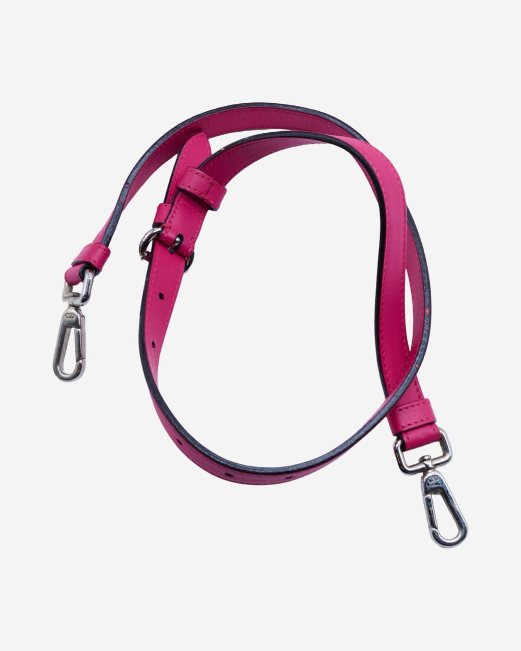 - Descripción: Bolsa de mano Dior en piel color naranja, páneles laterales en rojo y asas en color rosa, abertura principal abierta con bolsillos, grabado interior característico y pouch con bolsillos, hardware en tono plateado