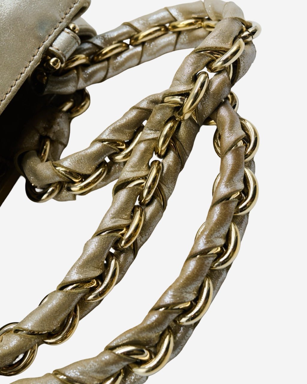 • Descripción: Bolsa de hombro Fendi en gamuza con print metálico en tono dorado, doble asa fija, placa metálica de logo FF frontal, dos compartimentos principales y bolsillo con cierre de doble sentido, hardware en tono dorado