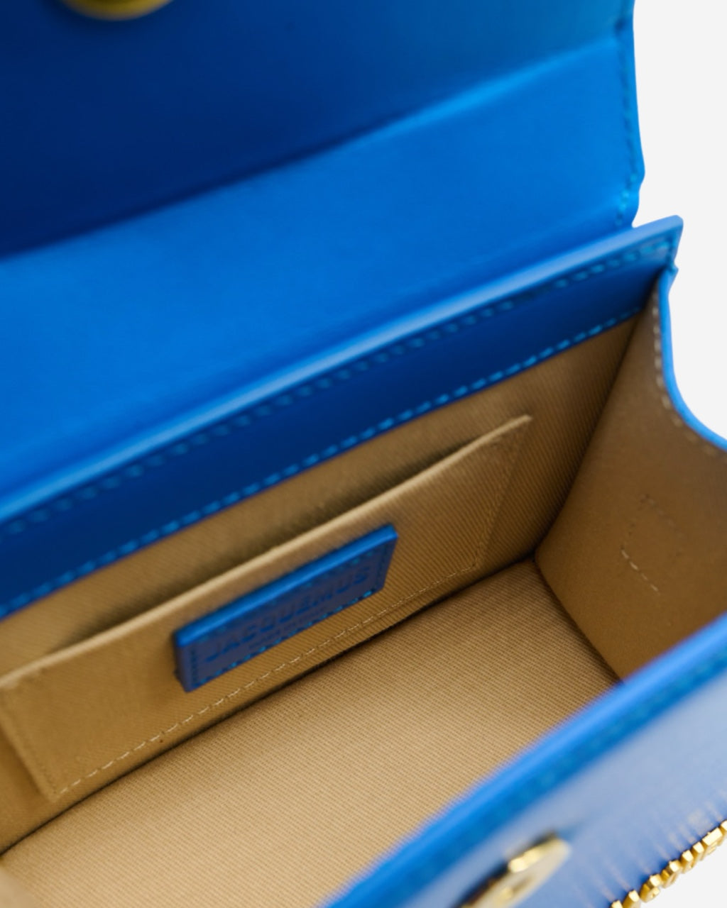 - Descripción: Bolsa de mano Jacquemus con asa rígida, cierre frontal magnético, placa de logo característico frontal, abertura principal con solapa y broche magnético, forro interior textil color beige, hardware en tono dorado