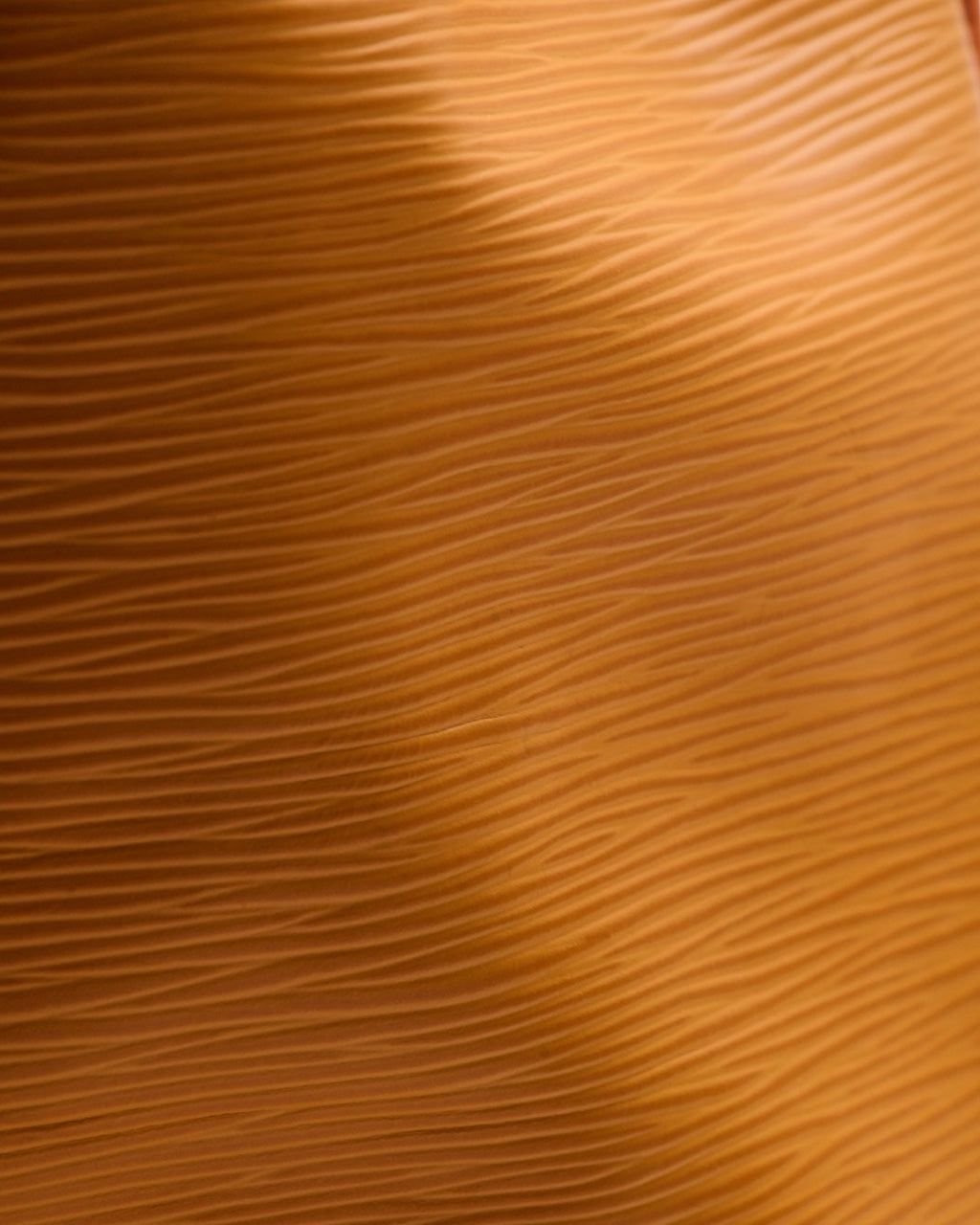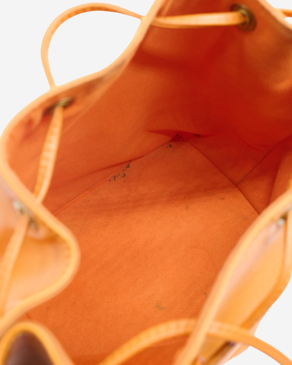 - Descripción: Bolsa de hombro en piel epi color naranja, asa fija al tope ajustable, forro interior en gamuza con bolsillo, hardware en tono dorado