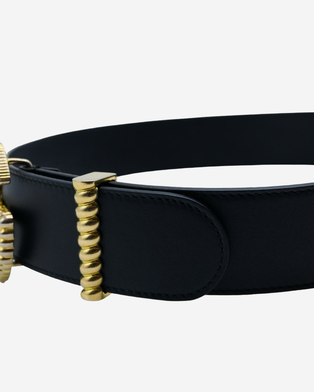 - Descripción: Cinturón Gucci en piel color negro, hebilla frontal 'GG' característica, grabado en el interior, hardware en color dorado