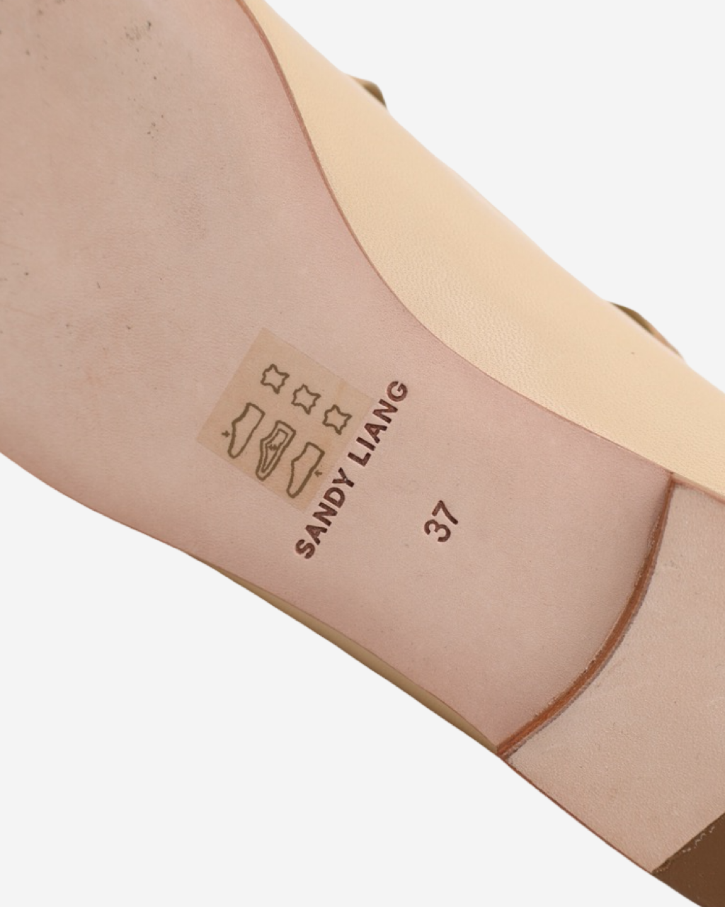 - Descripción: Flats Sandy Liang en piel color beige, puntera cuadrada, motivo de resortes cruzados, plantilla en piel con logo en el interior, suela plana